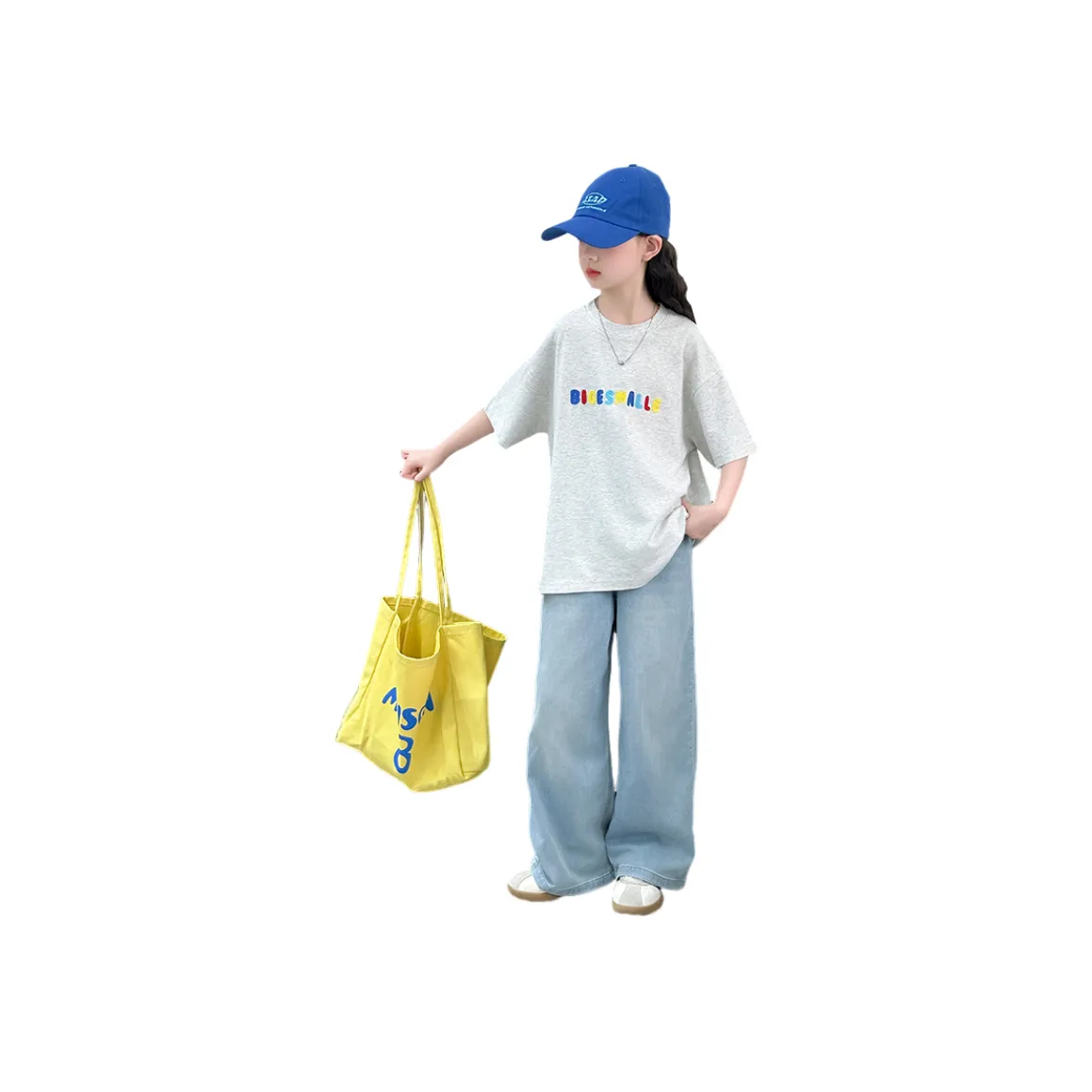 Комплект Yomi House с короткими рукавами и синими джинсами - еще один отличный вариант для девочек. Он выполнен из легкого материала и подходит для летних дней. Этот комплект также хорошо смотрится с зеленой рубашкой, создавая стильный образ.