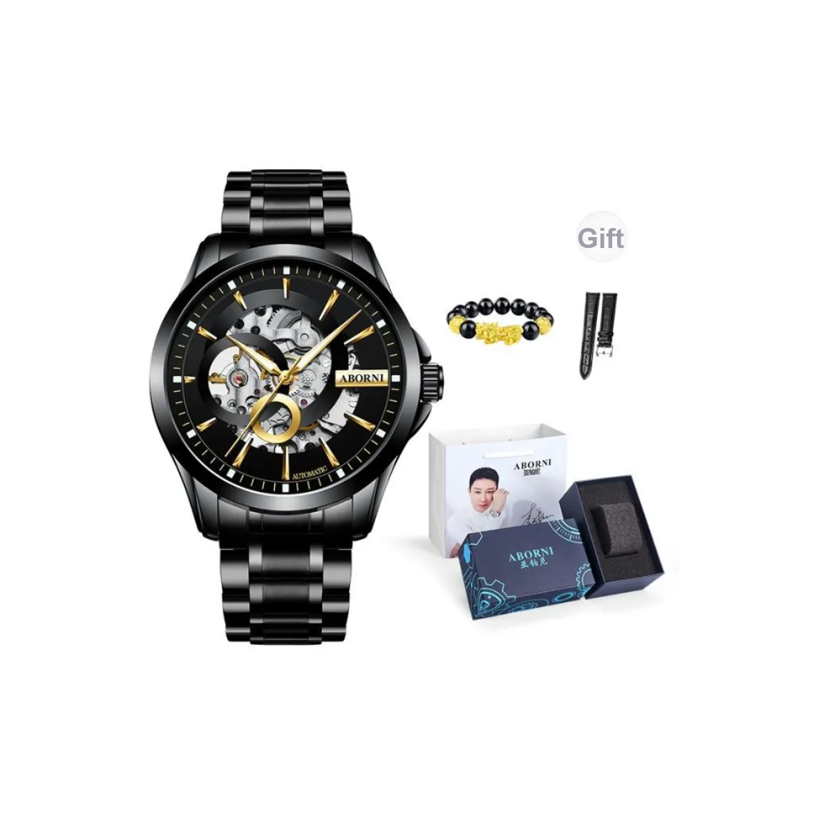Часы Aborni Cool Collection с автоматическим механизмом и скелетным циферблатом - это стильный аксессуар для мужчин, которые ценят уникальность. С водонепроницаемостью для повседневного использования и кожаным ремешком, они идеально подходят для модных мужчин. Прозрачная задняя крышка добавляет интересный элемент к дизайну.