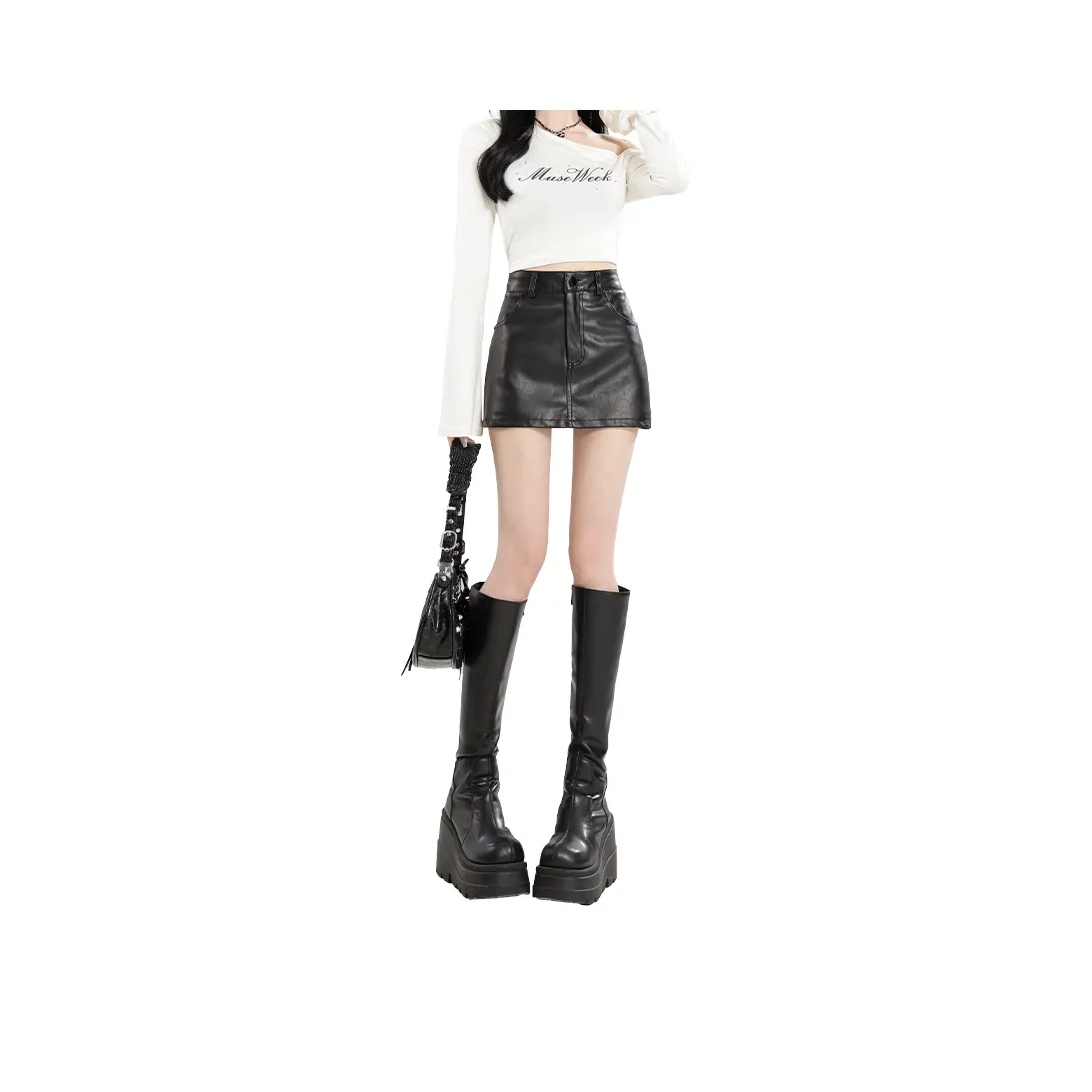 SOON FLOWER Кожаные короткие юбки Женские Черный