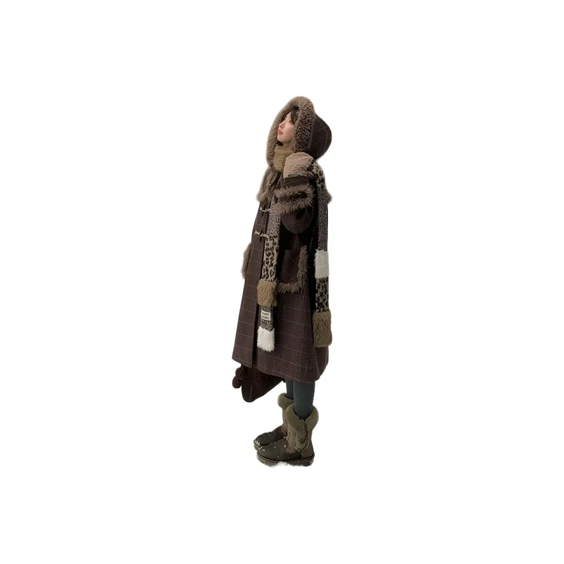 Шершавая куртка HUOLIDEDITU выполнена из смеси полиэстера и шерсти, что обеспечивает тепло и комфорт. Она имеет стильный дизайн с патчворком и клетчатым узором, что делает ее уникальной.