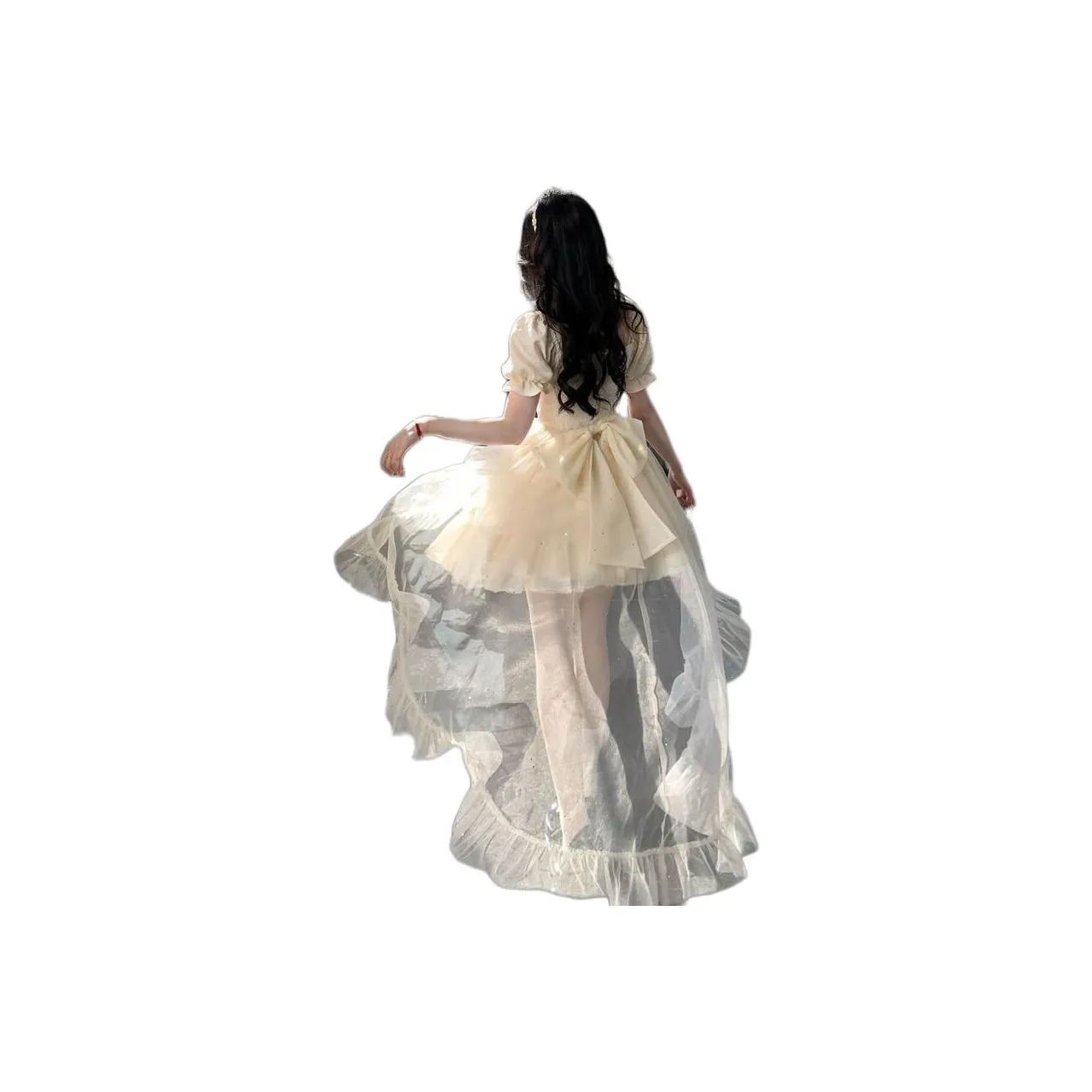 BONAS предлагает абрикосовое платье с съемным подолом и большим бантом, что делает его идеальным для создания романтического образа для мамы и дочки. Этот комплект из полиэстера подходит для летних мероприятий и праздников.