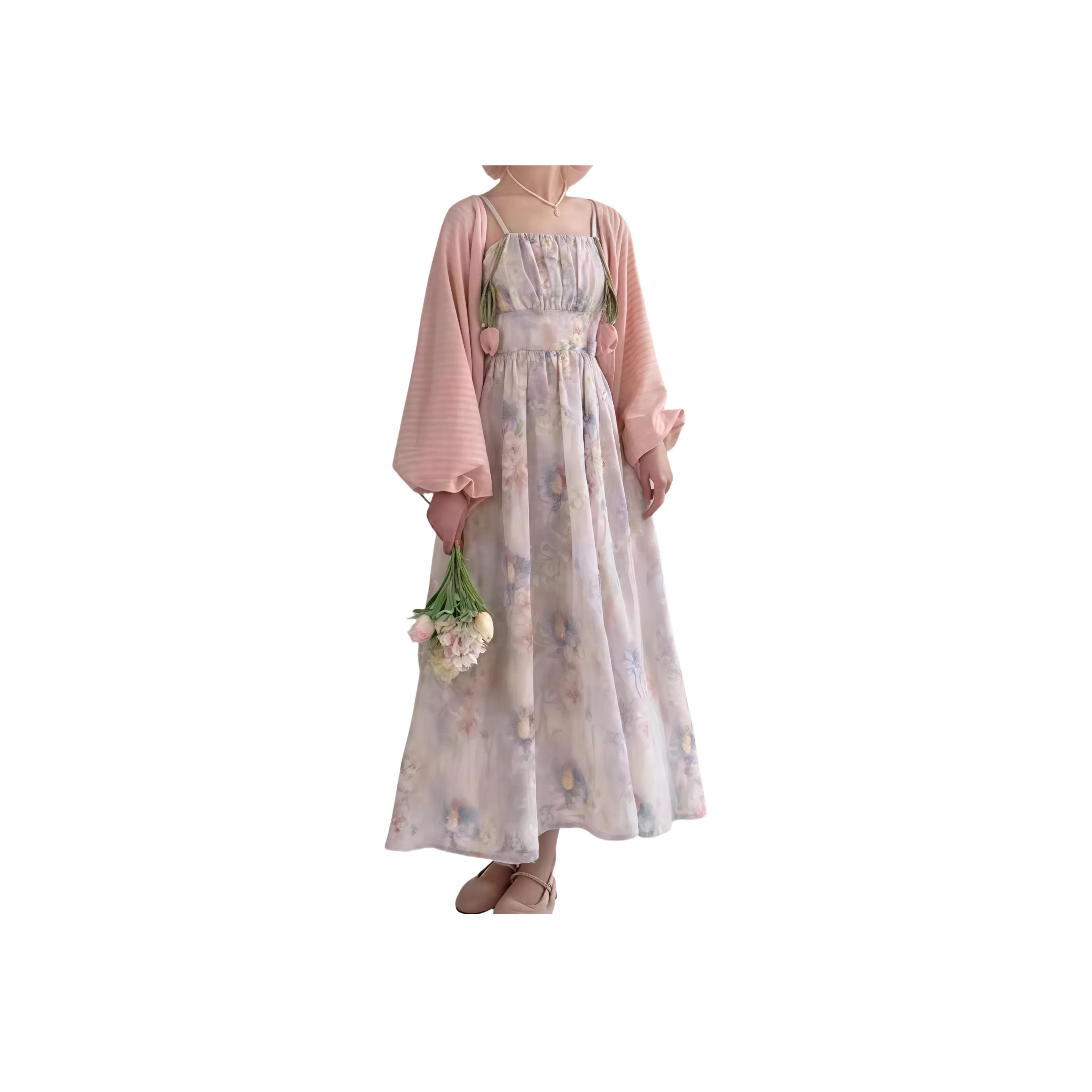 GIUHF предлагает розовое платье-камзол с кардиганом, которое станет отличным выбором для создания стильного образа для мамы и дочки. С цветочным принтом и качественным полиэстером, этот комплект подходит для весны и лета.