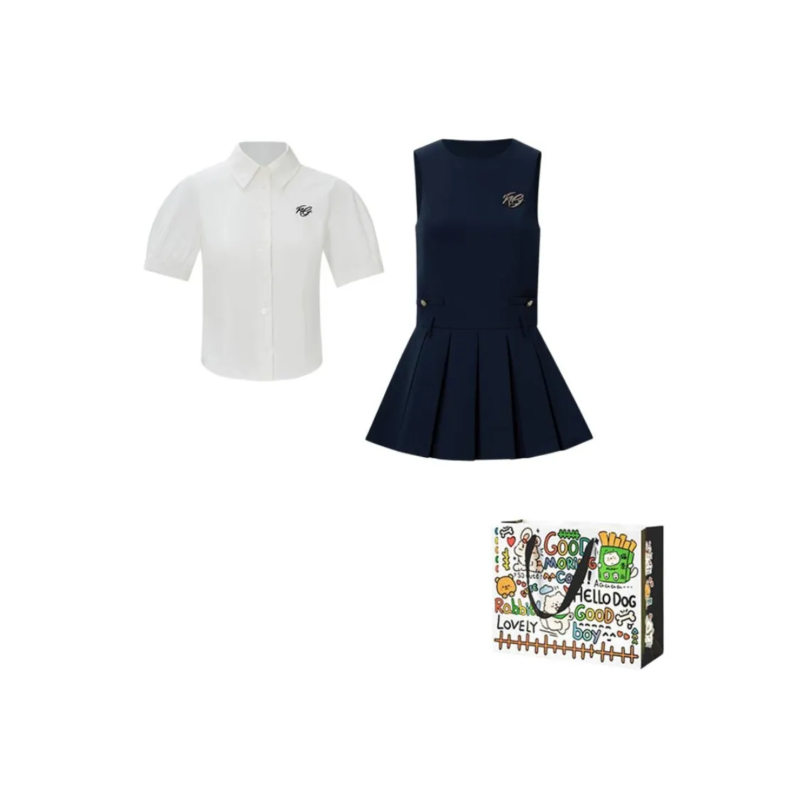 Комплект от ZVJH включает в себя белую рубашку и темно-синее платье, выполненные из 100% полиэстера. Этот комплект идеально подходит для летних мероприятий, обеспечивая стильный и современный вид. Он легко комбинируется с различными аксессуарами.