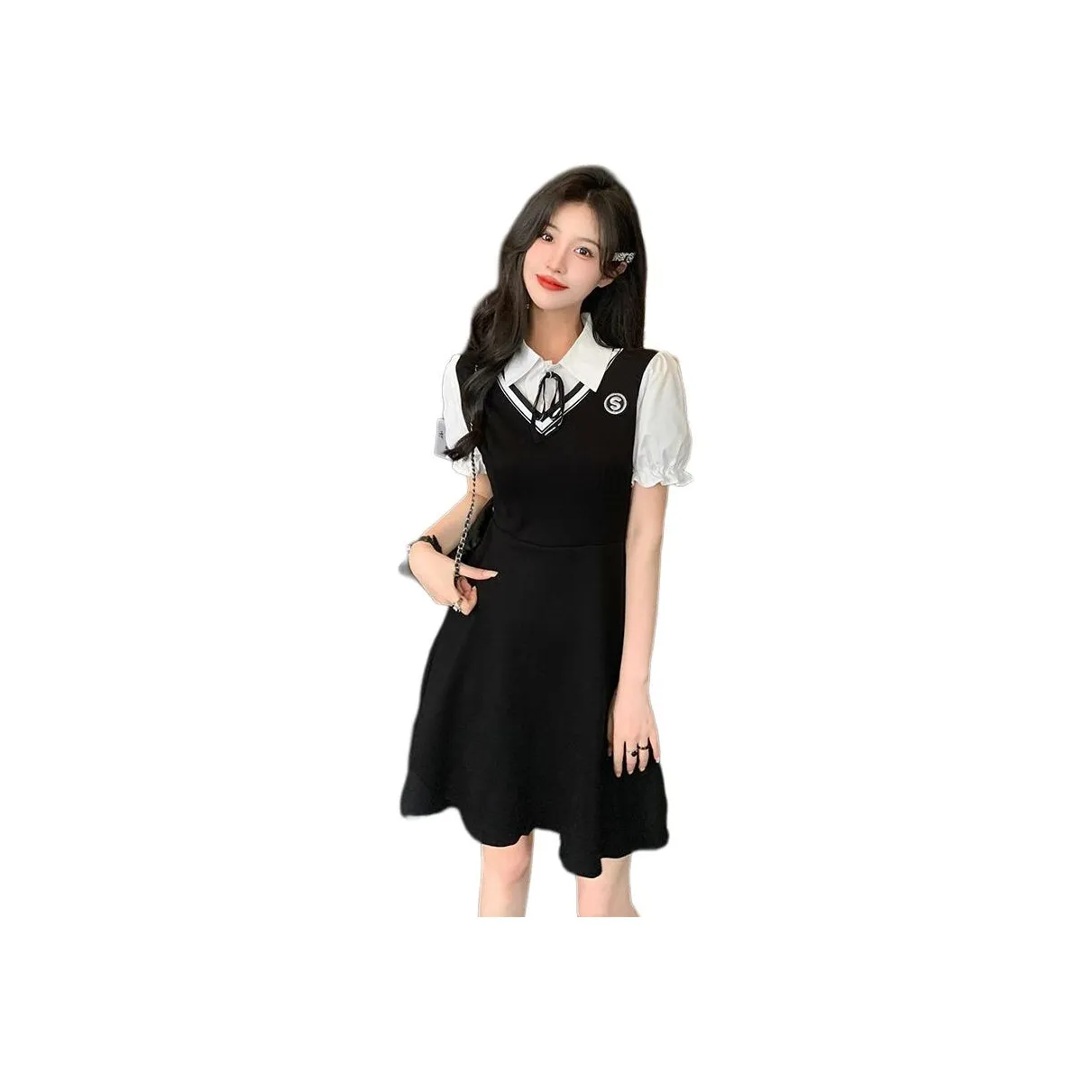 Lan Miao Черное укороченное женское платье с короткими рукавами - это классика, которая никогда не выйдет из моды. С его простым, но стильным дизайном, это платье идеально подходит для вечеринки или свидания.