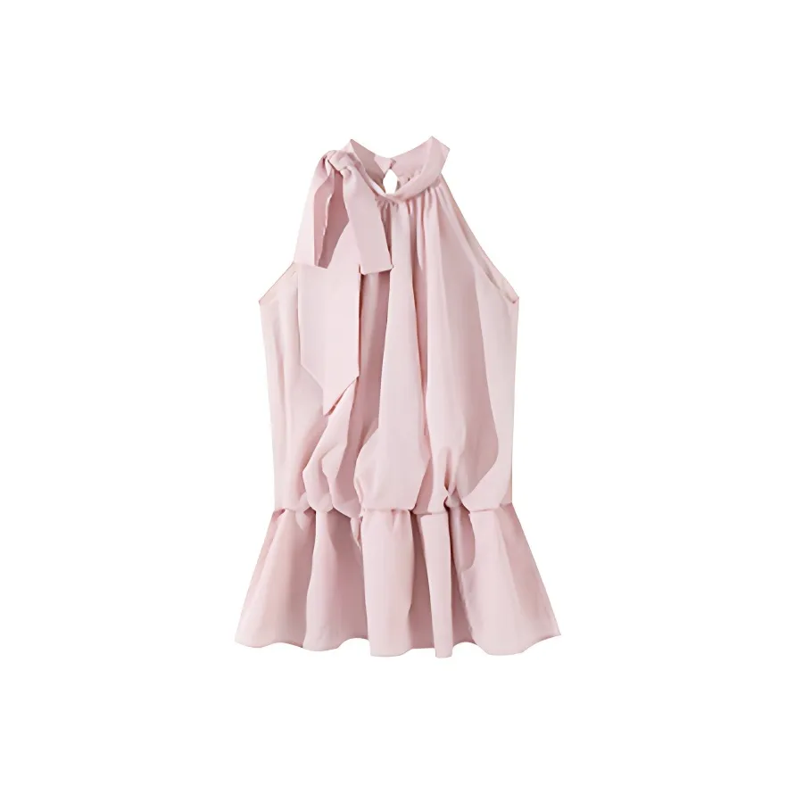 The Temptation Of The Muse Без рукавов Платье Женское Розовое Укороченное