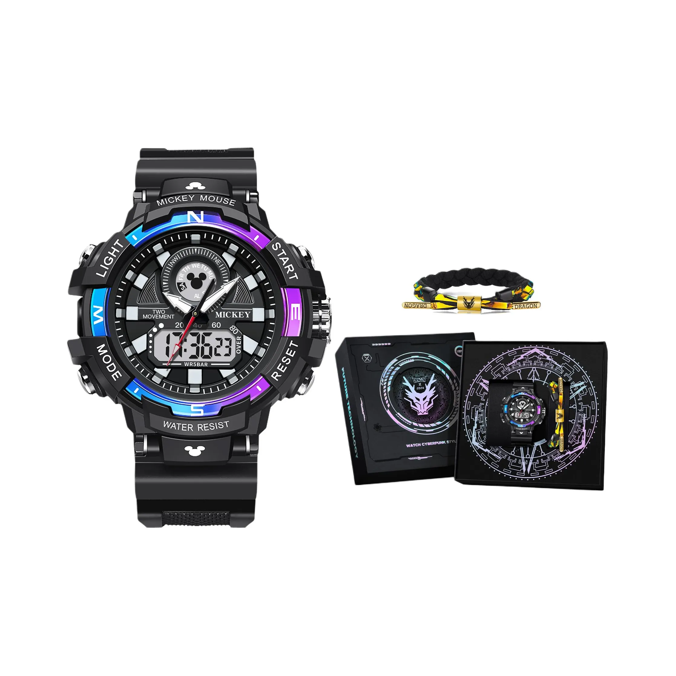 Disney Mickey Электронные механические часы Унисекс Черный циферблат