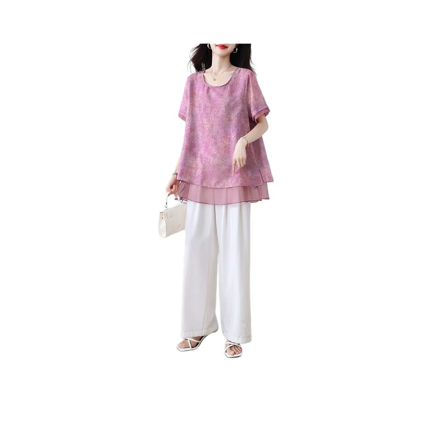 Рубашка от Yiner в розово-фиолетовом цвете - это идеальный выбор для весны и осени. Изготовленная из шелка и эластана, она обладает приятной текстурой и отлично сидит на фигуре. Пуловерный стиль и умеренная толщина делают ее универсальной для различных образов.