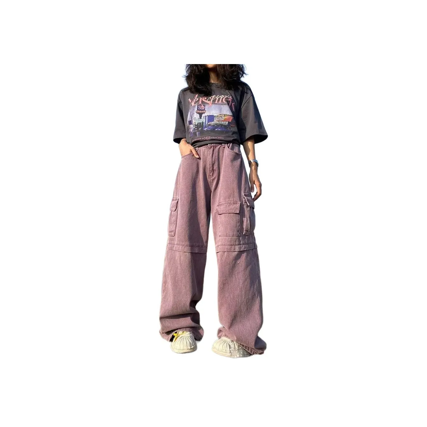 GOGIU Фиолетовые Унисекс Джинсы - это широкие брюки, которые идеально подходят для создания расслабленного образа. Изготовленные из хлопка, они обеспечивают комфорт и стиль. Эти джинсы имеют модный дизайн с карманами и патчами, что делает их отличным выбором для повседневной носки.
