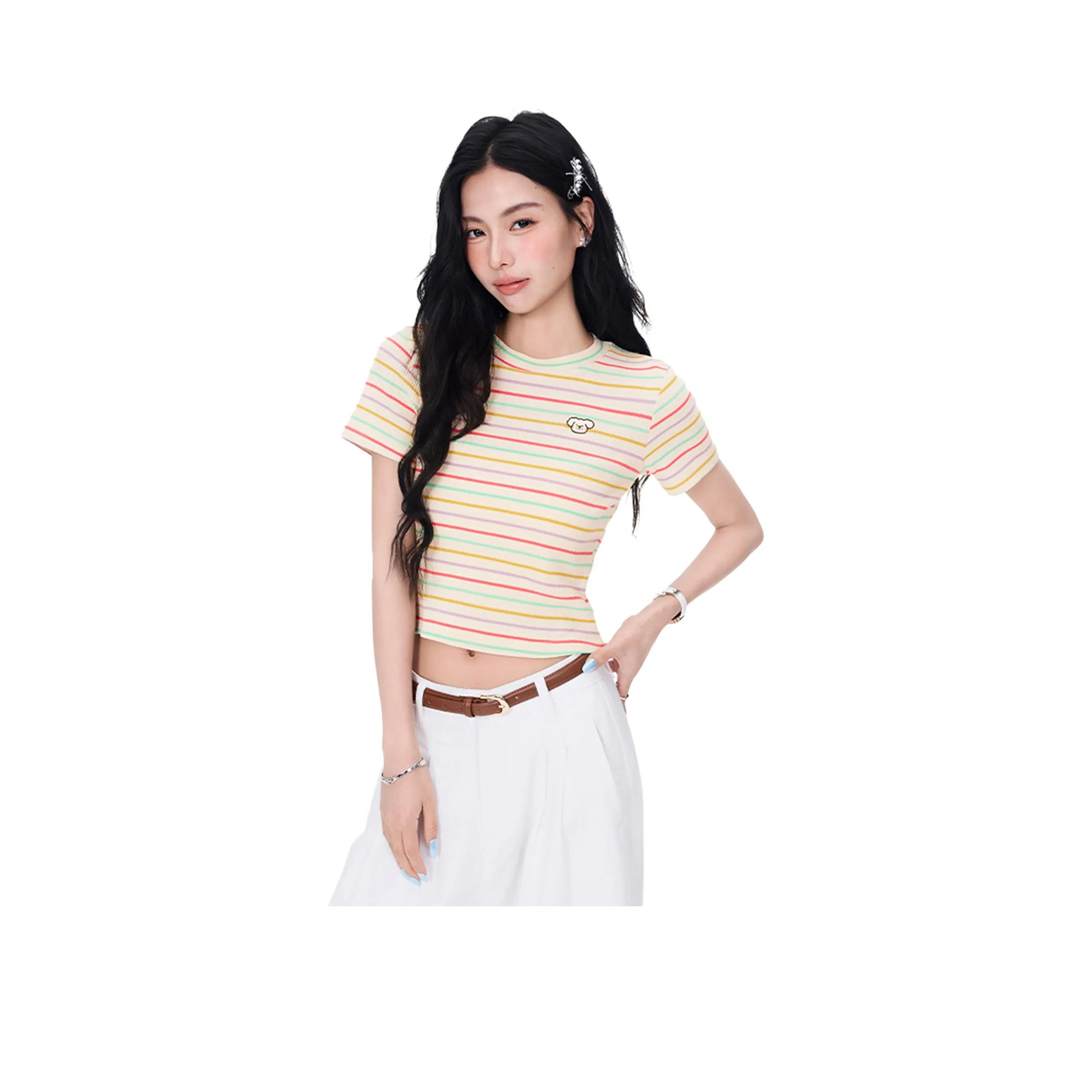 Футболка Wen Shan с радужными полосками для женщин - это отличный выбор для создания яркого образа. Она выполнена из мягкого материала, который обеспечивает комфорт в носке.
