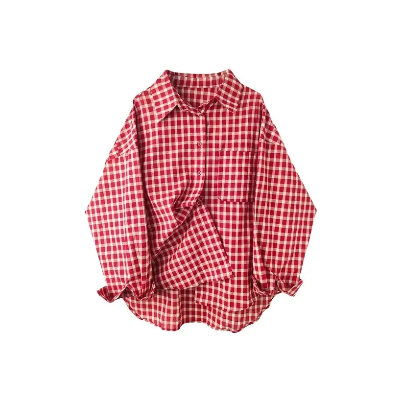 Красная рубашка Pirkadat для женщин - это стильный и комфортный выбор. Сшитая из смеси хлопка и полиэстера, она имеет клетчатый узор и свободный крой. Эта рубашка идеально подходит для весны и осени, а также включает в себя сумку для покупок.