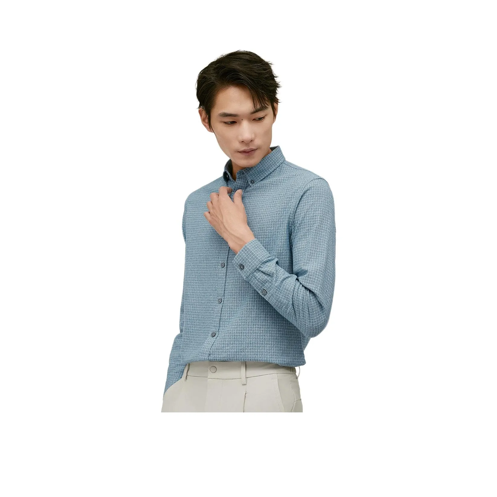 Red Bean Базовый Кнопка Пуховые Клетчатый Длинный рукав Рубашка Мужской