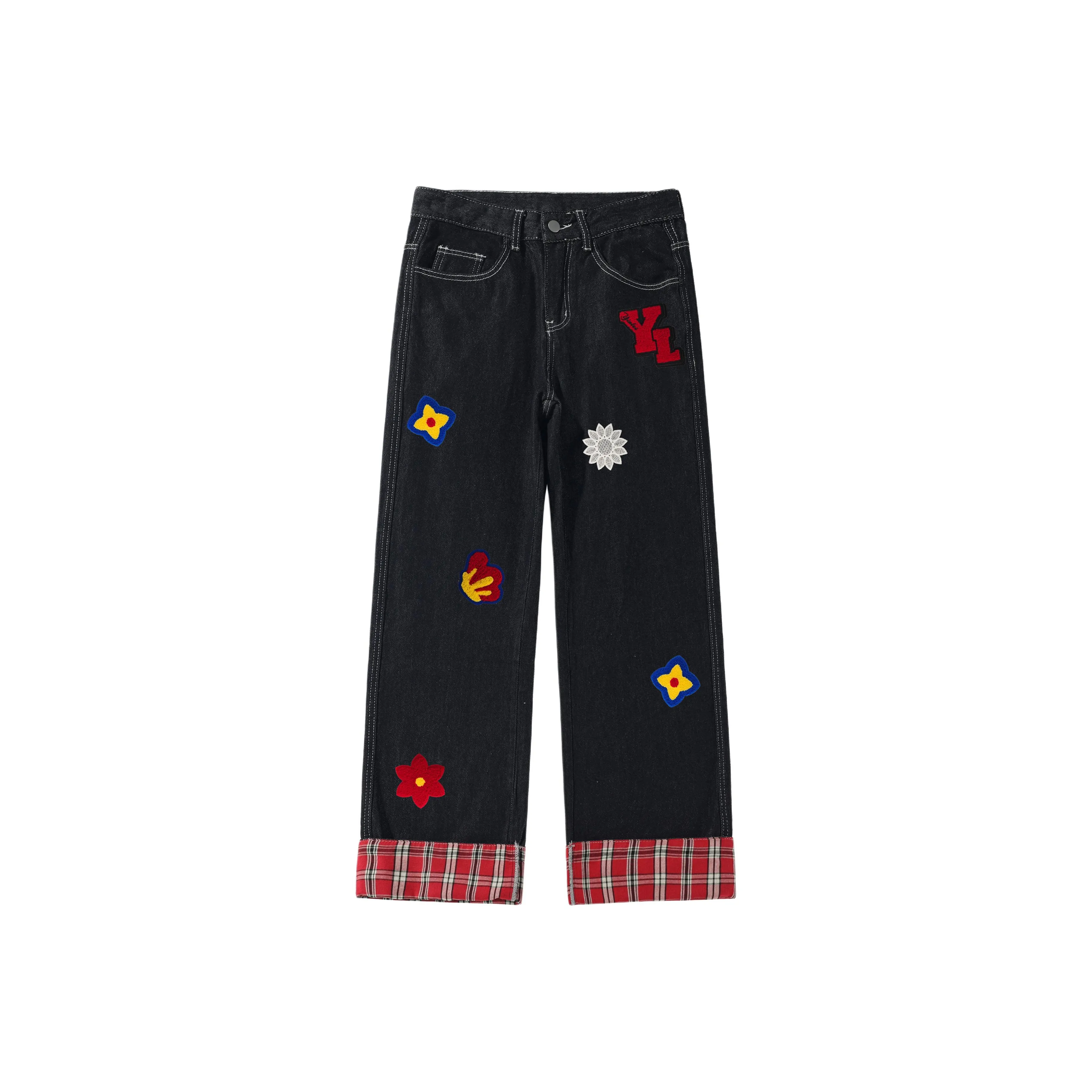 YINLEI Красная клетка Унисекс Джинсы