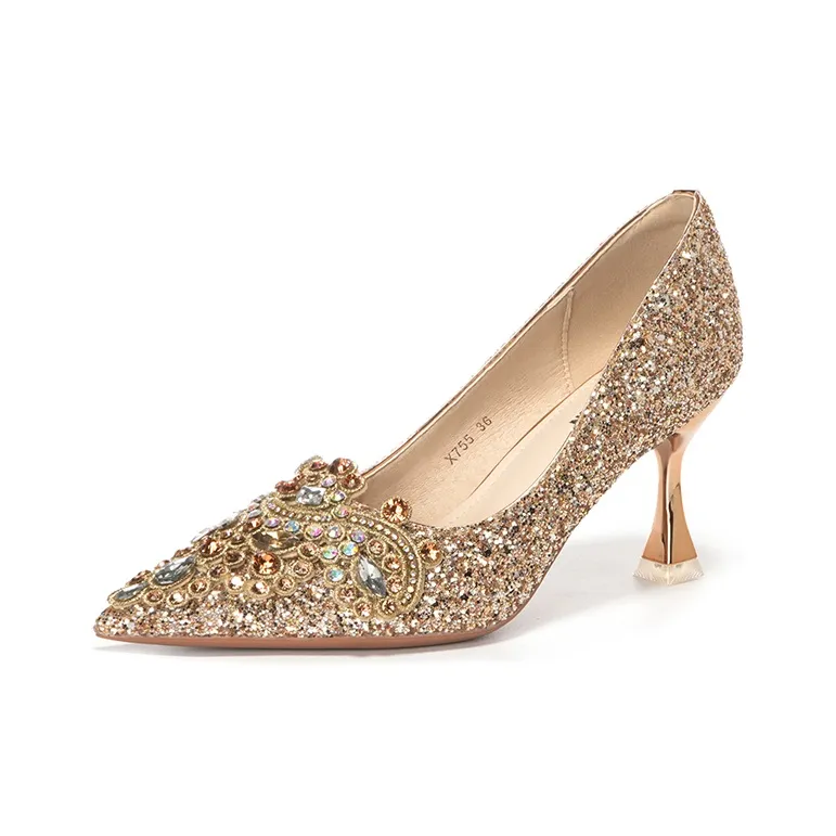 Туфли BIGTREE с высоким каблуком 8 см и открытым носком, выполненные из PU. Эти туфли с стразами идеально подходят для летних мероприятий. Они доступны в нескольких цветах, включая золотой, что позволяет легко сочетать их с различными нарядами.