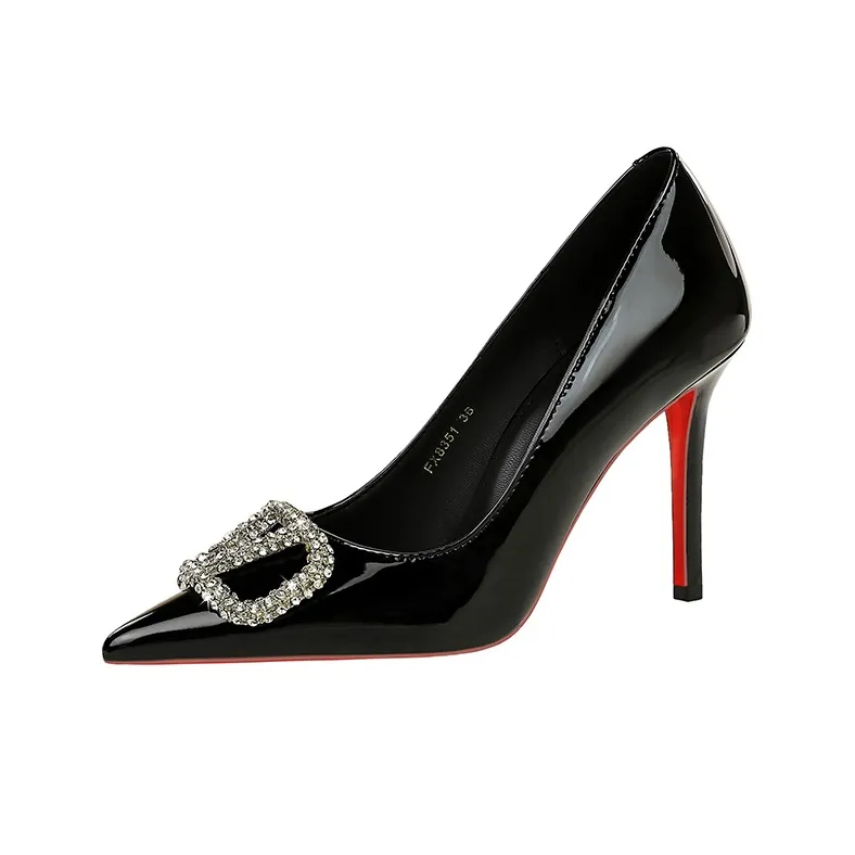 Туфли BIGTREE с супер высоким каблуком, выполненные из лакированной кожи. Эти туфли с острым носком и стразами идеально подходят для вечерних мероприятий. Они доступны в нескольких цветах, включая черный и бордовый.