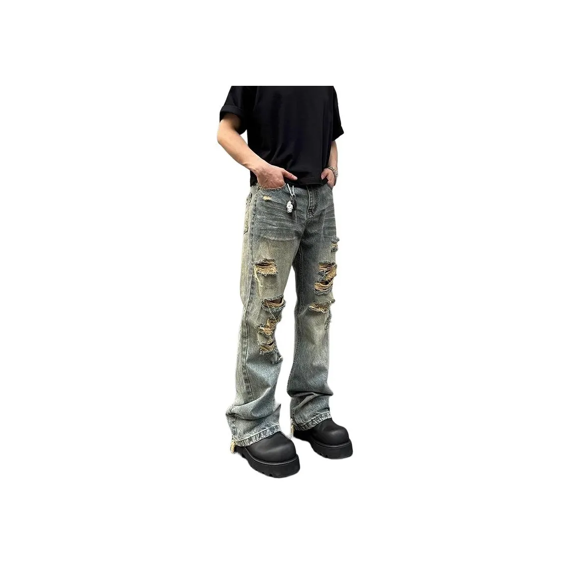 Джинсы MORii - это универсальная модель, которая подойдет как мужчинам, так и женщинам. Эти рваные джинсы с фланцевым кроем и средней посадкой обеспечивают комфорт и стиль. Изготовленные из смеси хлопка и полиэстера, они идеально подходят для весны, лета, осени и зимы.