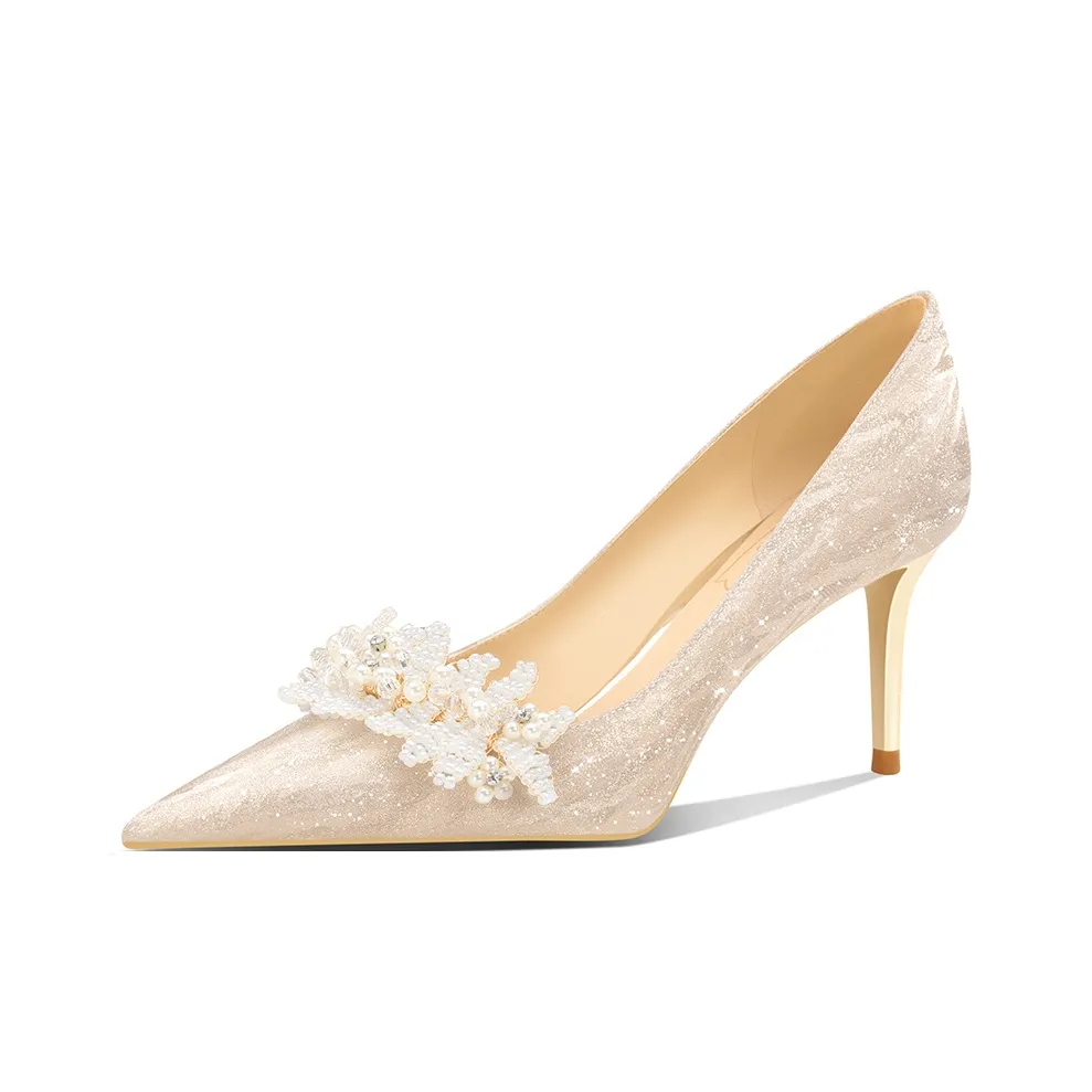 Эти высокие каблуки от ROSE CASTLE в белом золоте идеально подходят для свадеб и других торжеств. Их классический дизайн делает их универсальными для любого наряда.