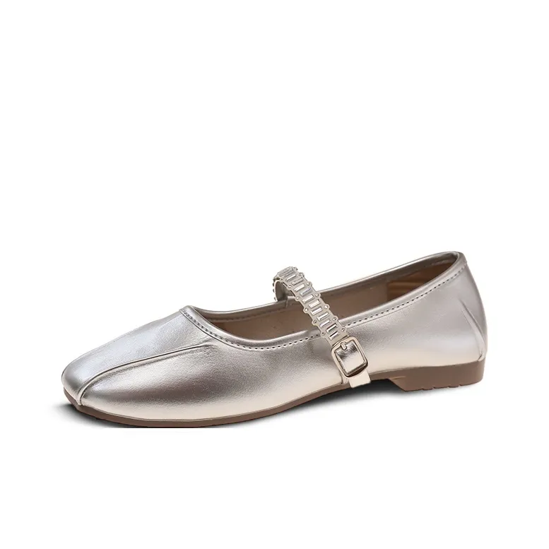 LOMOQUEEN Балетки для Женщин Планшет Повседневные Туфли Мэри Джейн 3 см Женские Сияющий Серебряный