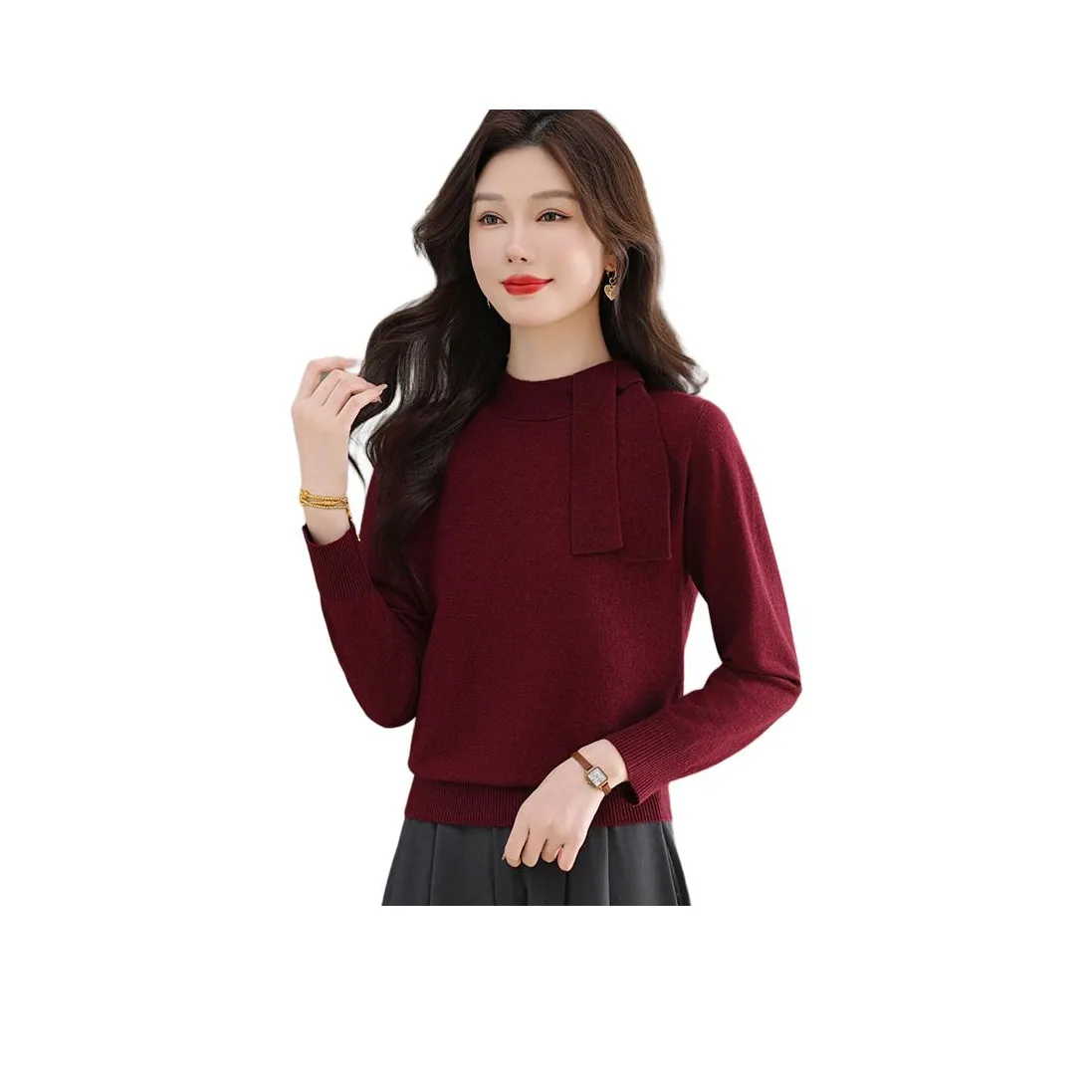 Комплект из белой рубашки и юбки с бантом от Mu Qingqing - это идеальный выбор для зимы. Умеренная толщина и высокий пояс делают его стильным и удобным.