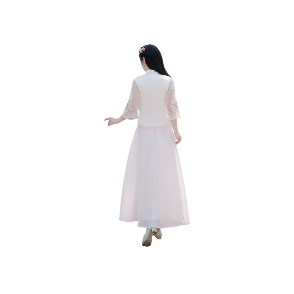 GORGEOUSIDEA предлагает белый топ и синюю юбку, выполненные из смеси полиэстера и хлопка. С цветочным узором и кнопочной застежкой, этот комплект подходит для весны и лета.