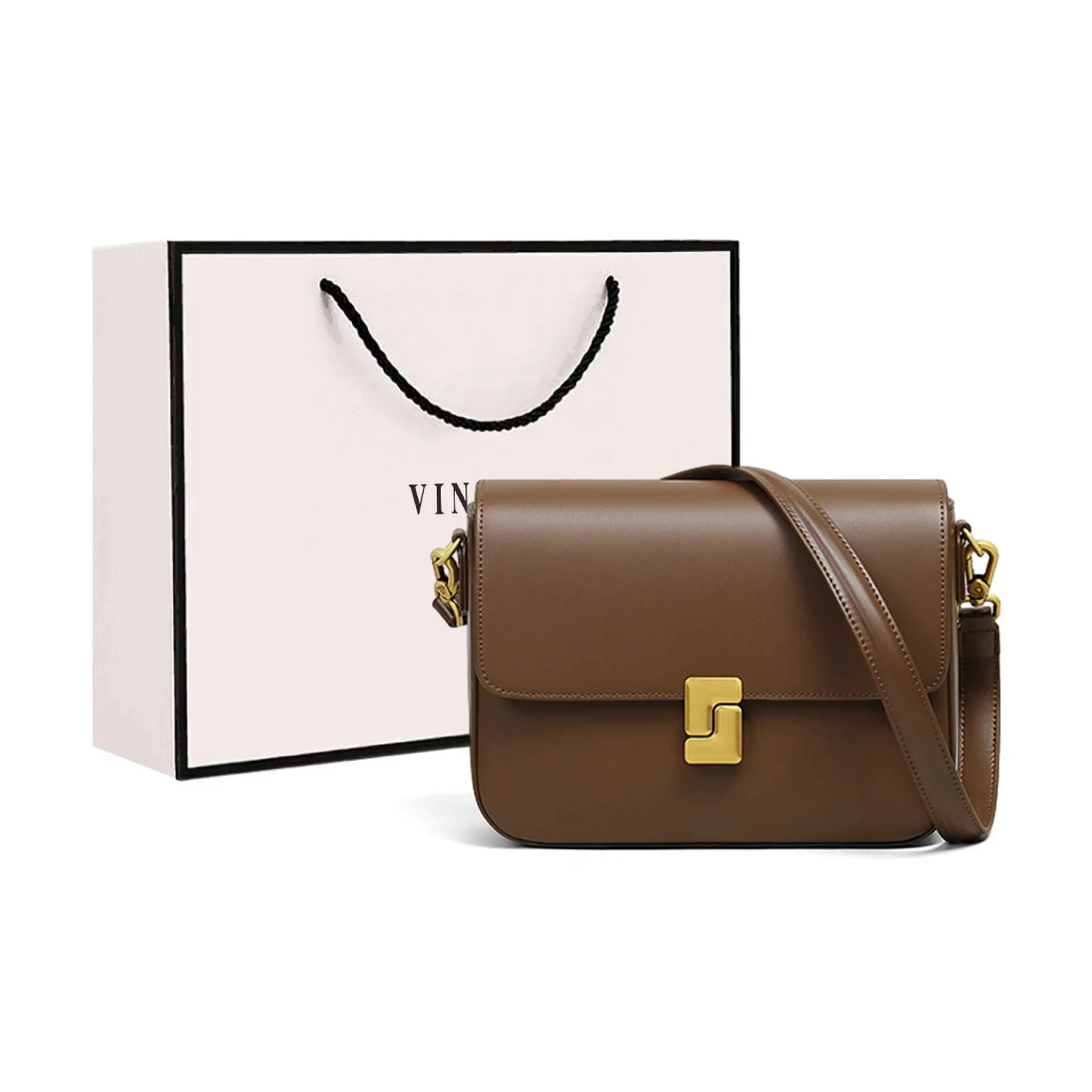 VINEY Сумка через плечо из коровьей кожи маленькая женская кофейного цвета