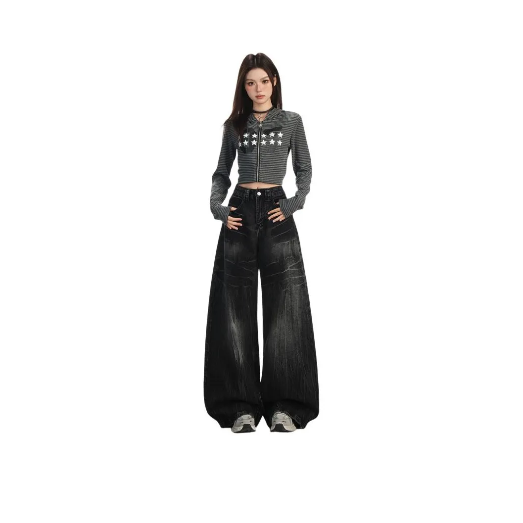 Унисекс джинсы BAOMIKA в черно-серых тонах имеют высокую посадку и застежку на молнию. Они выполнены из качественных материалов и имеют 3D-элементы, что делает их уникальными. Эти джинсы подходят для любого сезона.