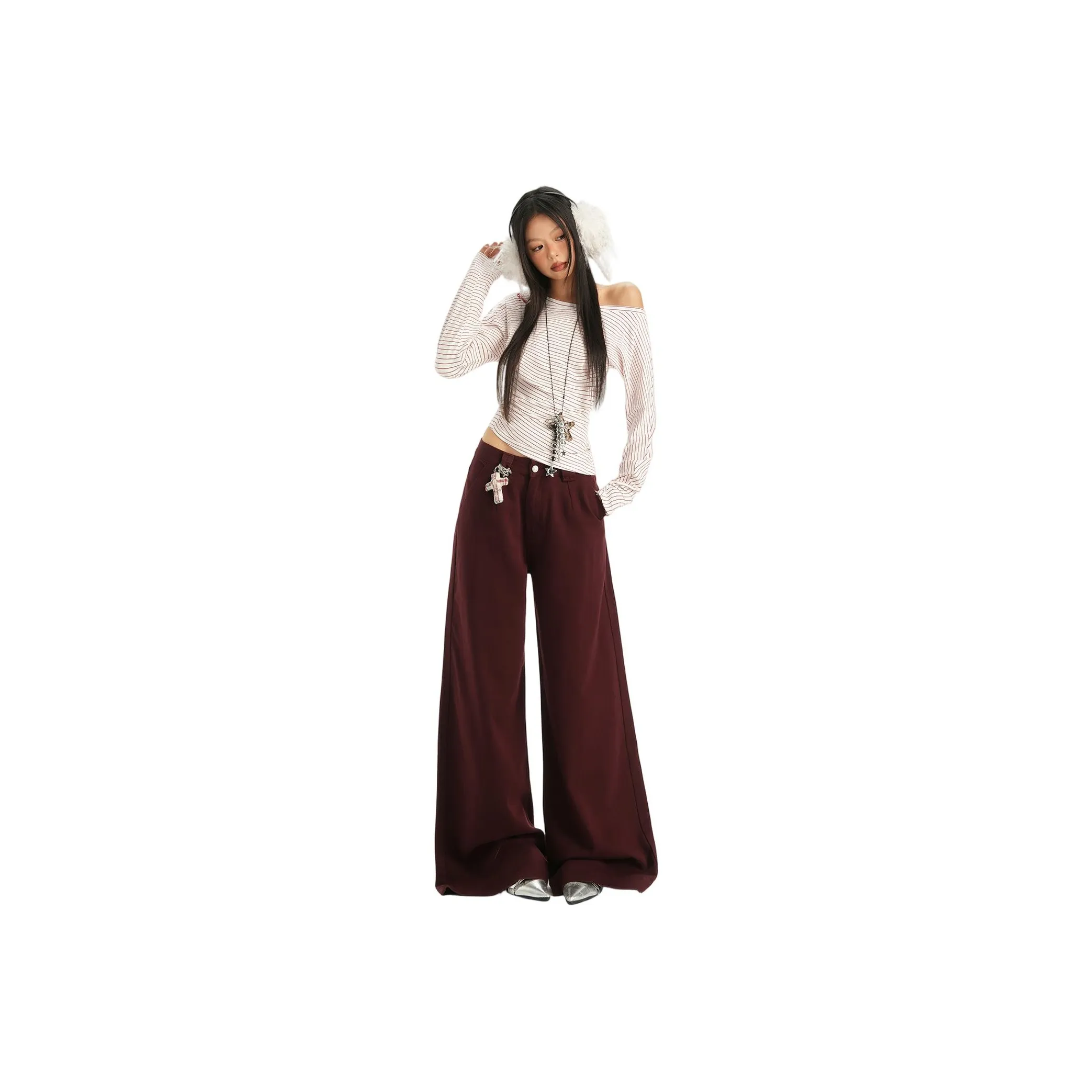 Olivia Share777 The Цвет OF The Модель'S Одежда Принадлежит к Красно-коричневой Серии Женские Джинсы
