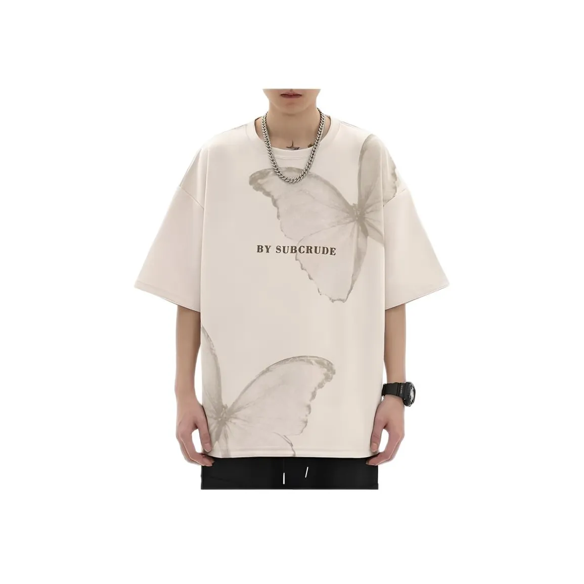 TONYBEAR Лето Бабочка Полу-Рукав Повседневный Замша T Рубашка Мужская