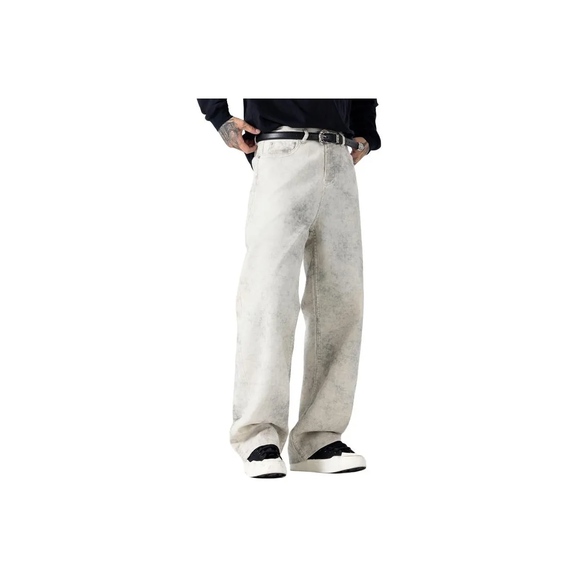 Джинсы GANGZAI с эффектом тай-дай и потертостями идеально подходят для создания стильного образа. Они выполнены из прочного денима и имеют прямой крой. Эти джинсы подходят для любого сезона и легко комбинируются с различными верхами.