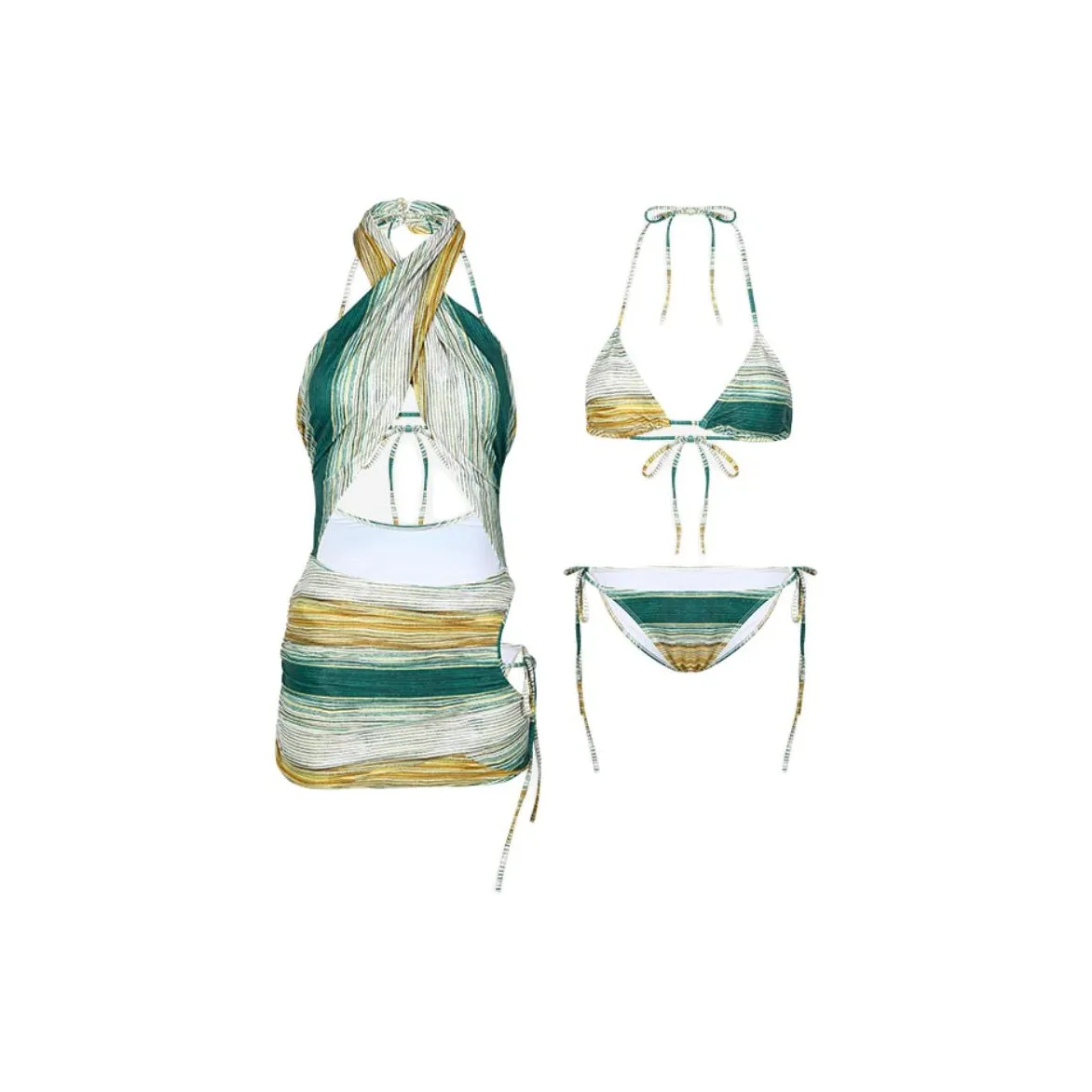 Бикини LUYOUYE с желто-зелеными полосками - это отличный выбор для тех, кто хочет добавить немного яркости в свой пляжный гардероб. Этот купальник выделяется своим уникальным дизайном.