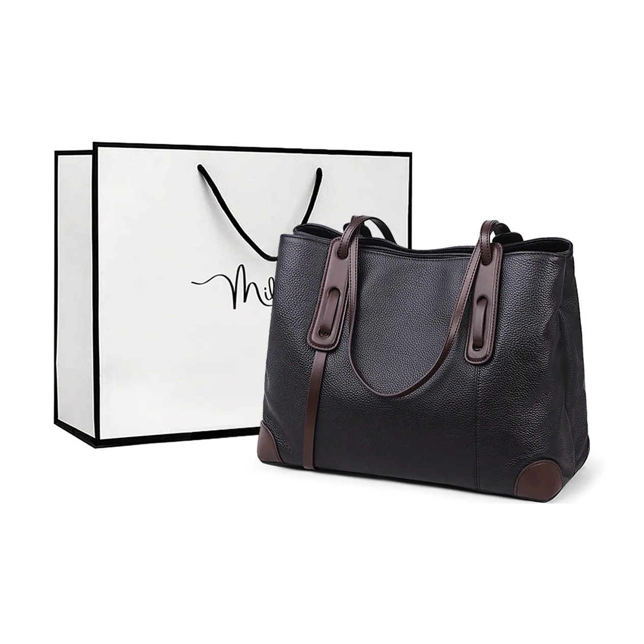 MILLIE'S Сумка-тоут из коровьей кожи плечевая сумка женская черная коричневая серая и коричневая черная