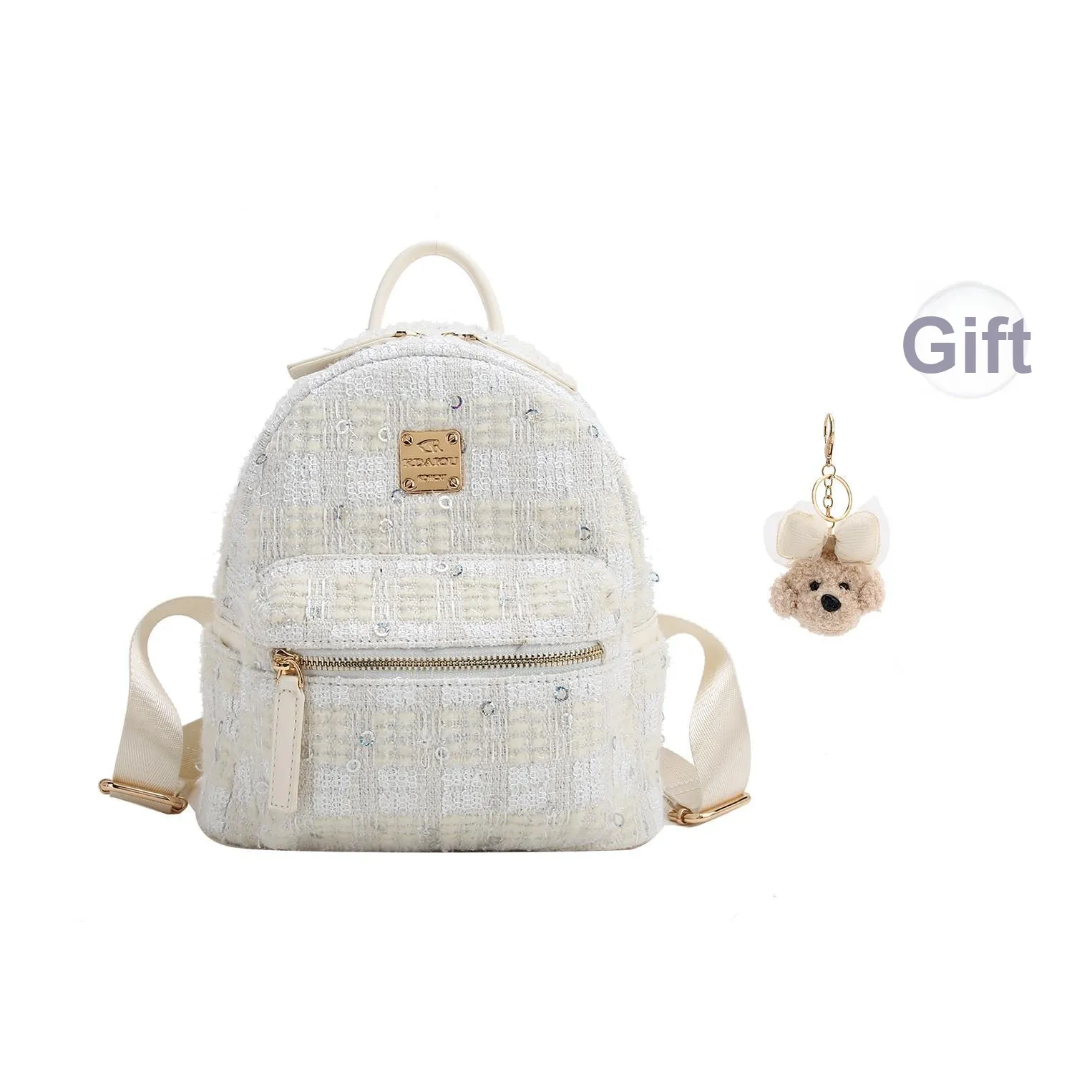 Рюкзак Carit&Koty выполнен из ПУ и имеет размеры 9.1*4.3*10.2 дюймов. Он отличается мягкой текстурой и стильным бело-серым цветом. Закрывается на молнию и включает внутренний карман, что делает его удобным для повседневного использования.