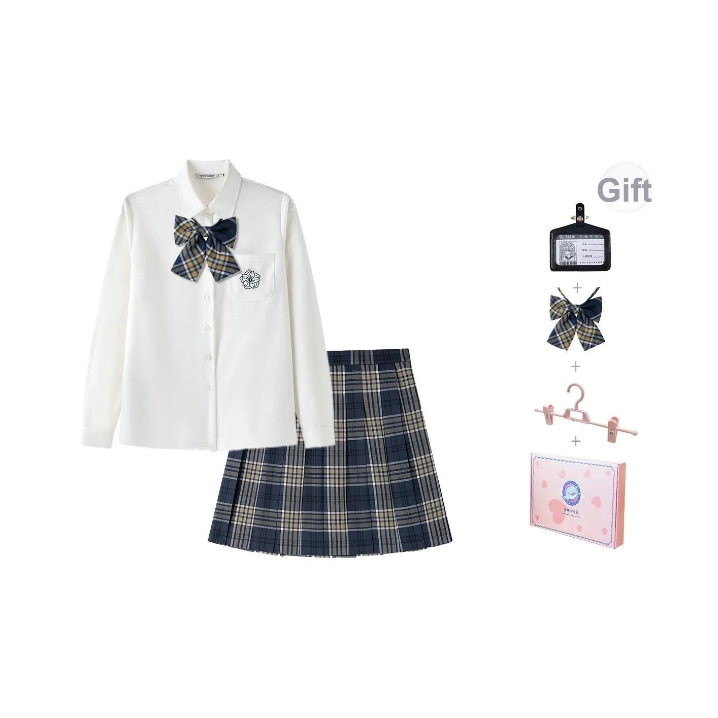 Tokyo Season Белая рубашка + Синий Желтый 'Berlin Spring ' С подарками A Бесплатно Галстук-бабочка + Платье Нижняя заколка + Имя Ярлык Женская униформа