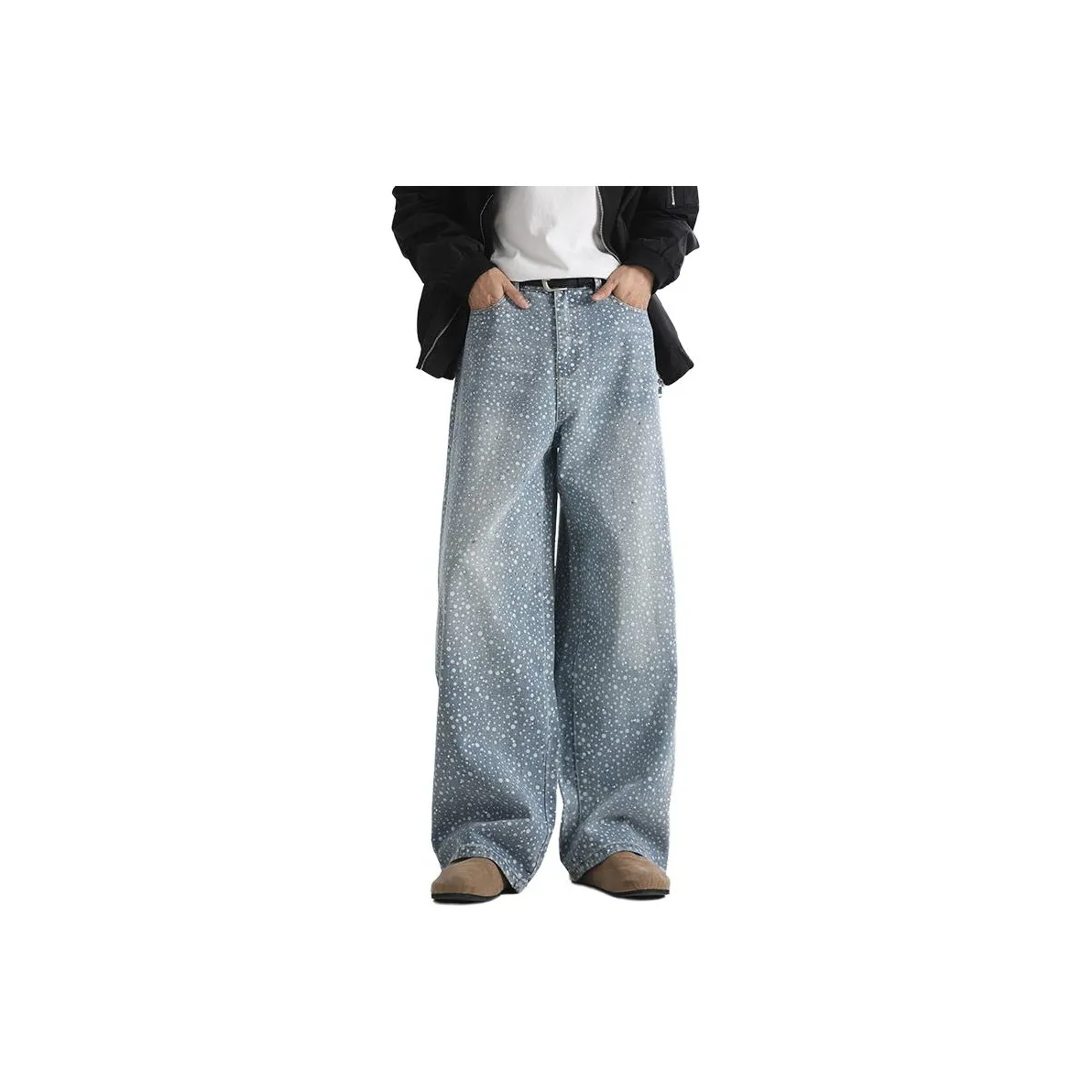 Широкие джинсы от ENPofficial идеально подходят для весны и осени. Изготовленные из смеси хлопка и полиэстера, они обеспечивают комфорт и стиль. Эти джинсы имеют среднюю посадку и застежку на молнии, что делает их удобными для повседневной носки. Их универсальный дизайн позволяет сочетать с различными верхами, от футболок до свитеров.