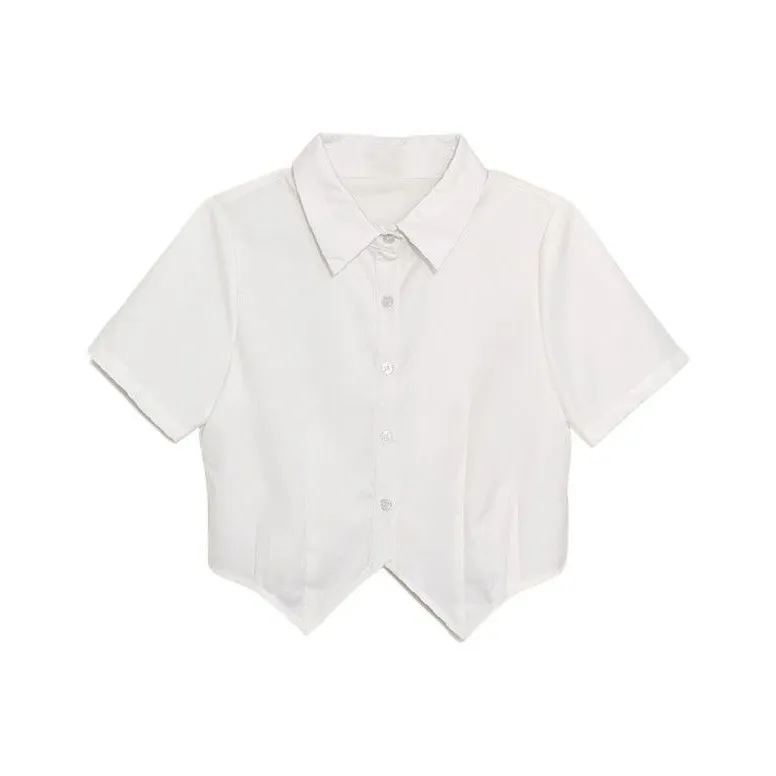 LAKESI Короткий рукав Белая рубашка + Черный полосатый галстук Женские рубашки