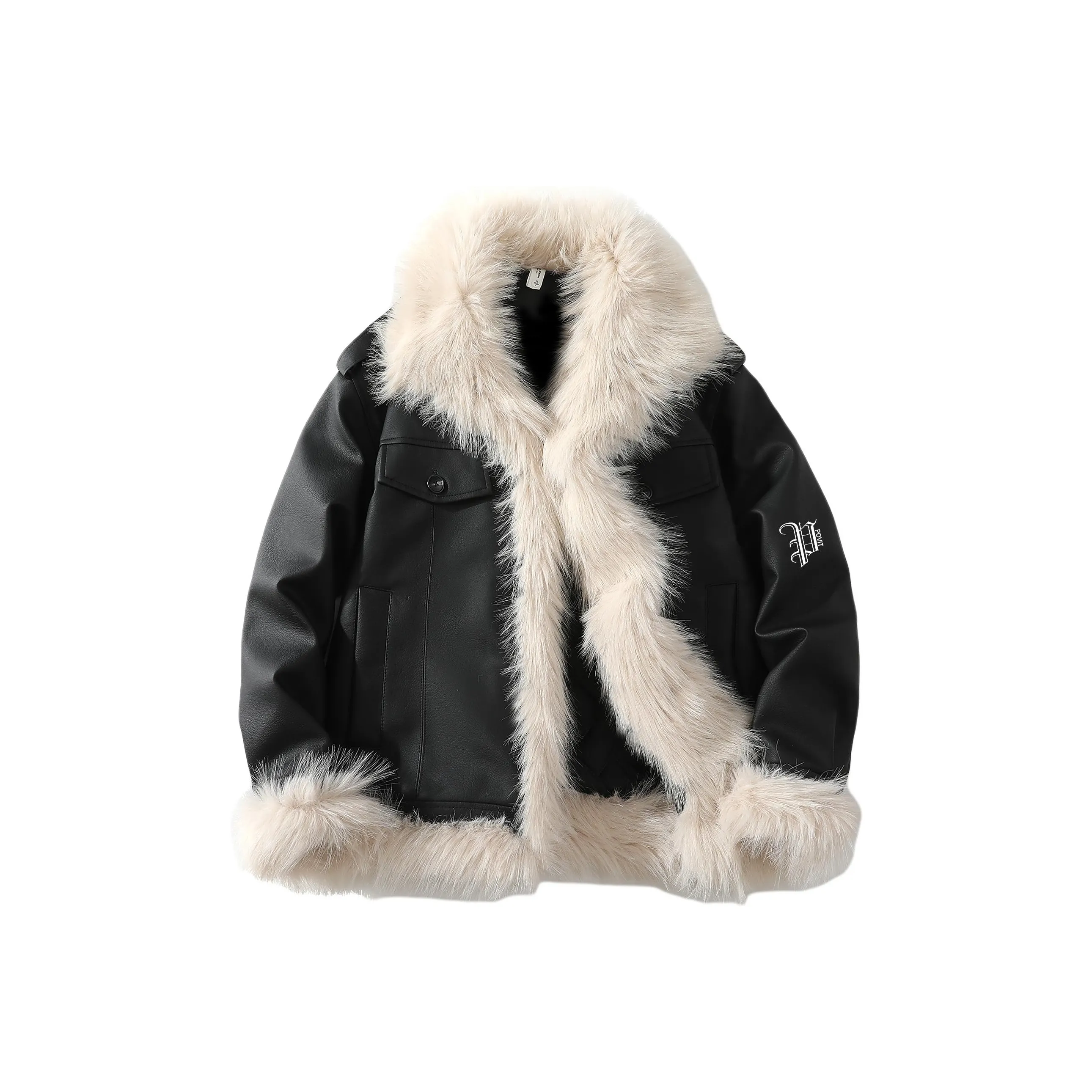 POVIT Черный [Флис с подкладкой термический меховой воротник] Унисекс пуховики (пуховики)