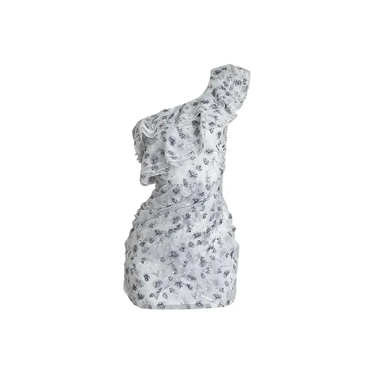 PAZZO Асимметричное плечо цветочный короткий рукав платье женское