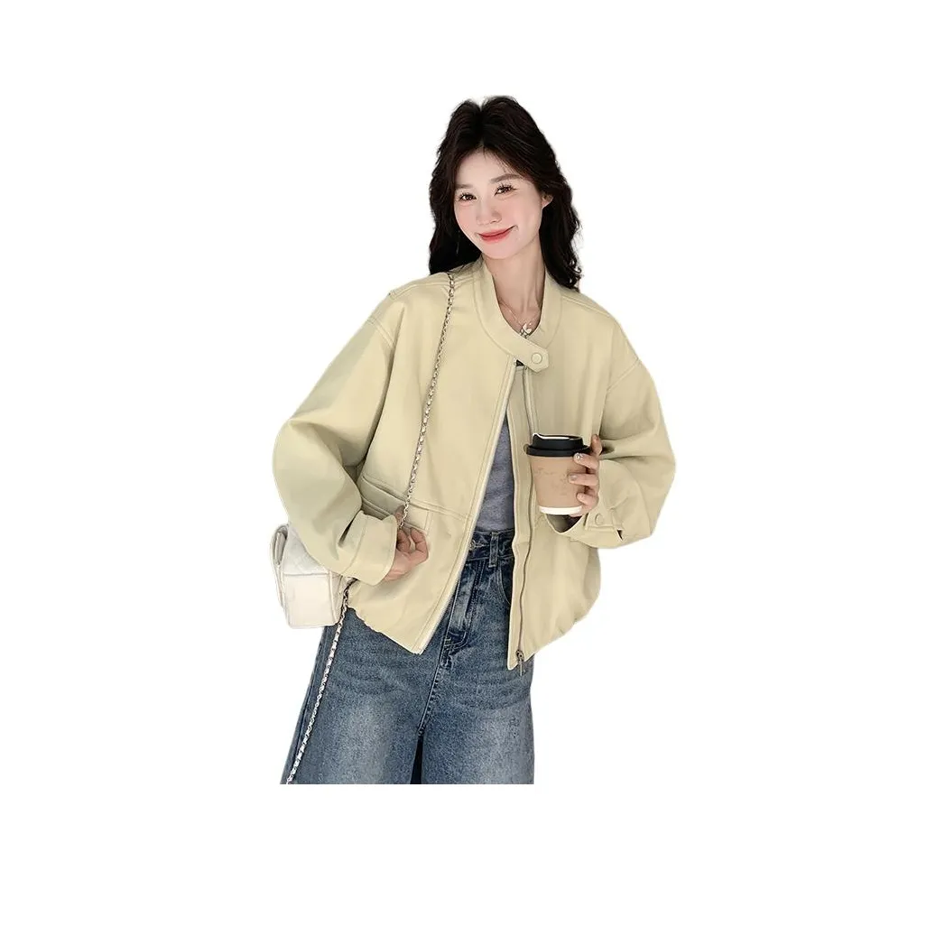 Кожаная куртка XIANGYING в бежево-желтом цвете - это универсальный вариант для всех сезонов. Сочетание различных тканей делает её уникальной. Одинарная застежка и стандартные рукава обеспечивают комфорт и стиль.