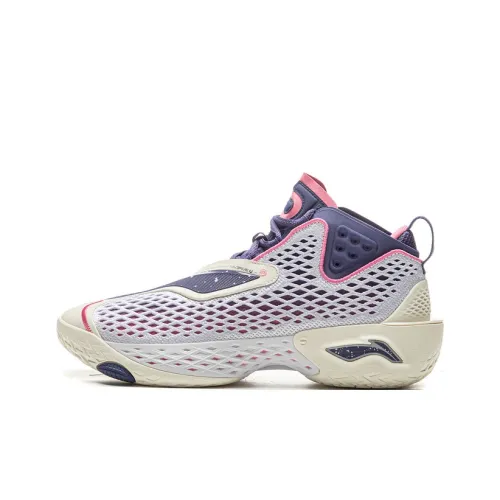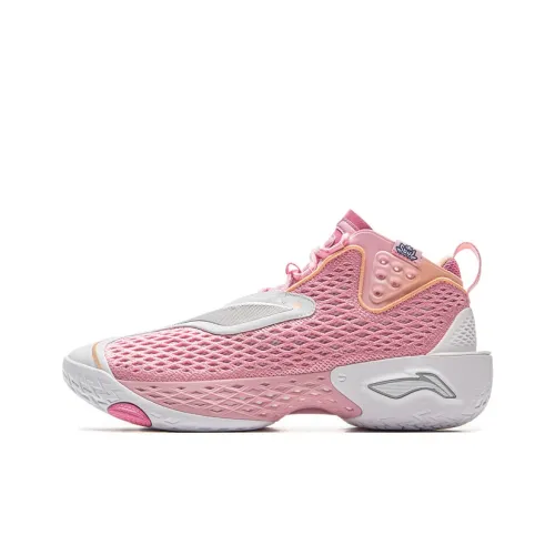 LiNing BadFive 5 Противоскользящий Устойчивый к износу Дышащий Отскок Сцепление MID Топ Баскетбольные кроссовки Мужской Розовый Белый