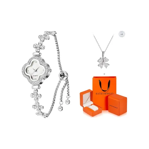 Katie Ermilio Наручные часы Кварцевый механизм Серебристый циферблат Женские часы Коробка признания в любви