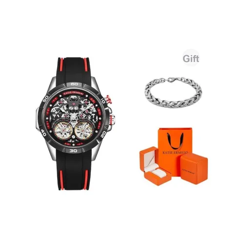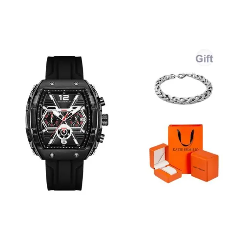Katie Ermilio Наручные часы Кварцевый механизм Силиконовый ремешок Черный циферблат Мужские часы