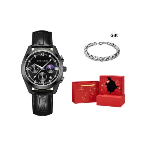 Katie Ermilio Наручные часы Кварцевый механизм Кожаный ремешок Черный циферблат Мужские часы Коробка признания в любви