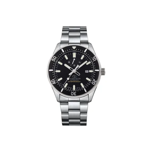 ORIENT STAR Автоматический Механический Механизм Стальной Ремешок Часы Мужские Черный Циферблат