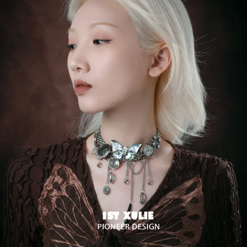 Стиль:Пустошь Бабочка Остров Винтаж Пуговицы Ожерелье [Очень тяжелый]