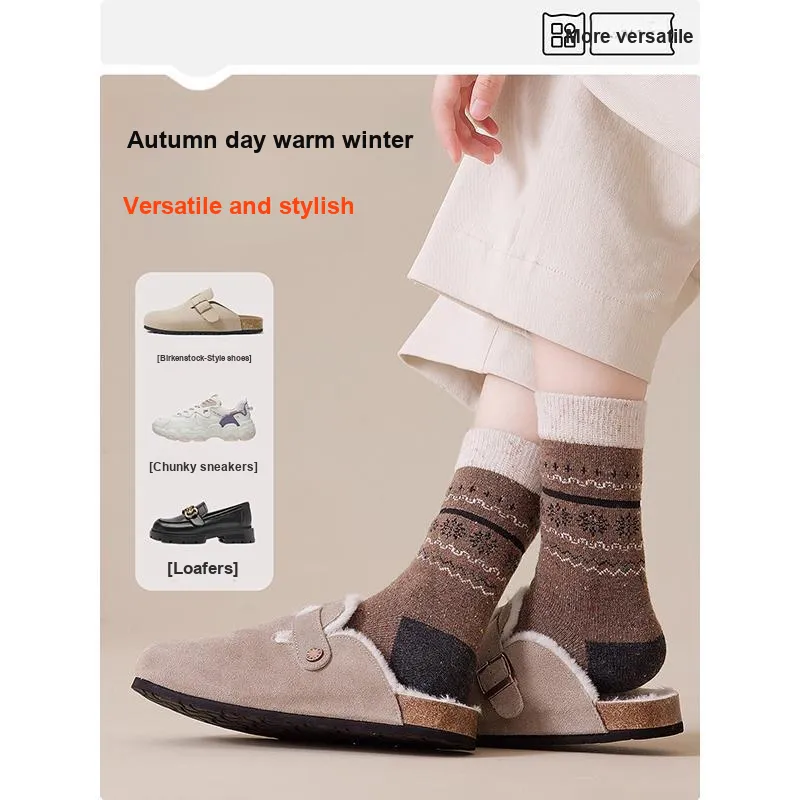 Цвет:[Fair Остров Коллекция Снежинка Узор 5 пар] Светло-Кофейный + Светло-Серый + Черный + Хаки + Бежевый