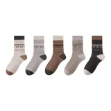2323 [Fair Island Collection Snowflake Pattern 5 Pack] Светло-Кофейный + Светло-Серый + Черный + Хаки + Бежевый Унисекс MID Носки до икры