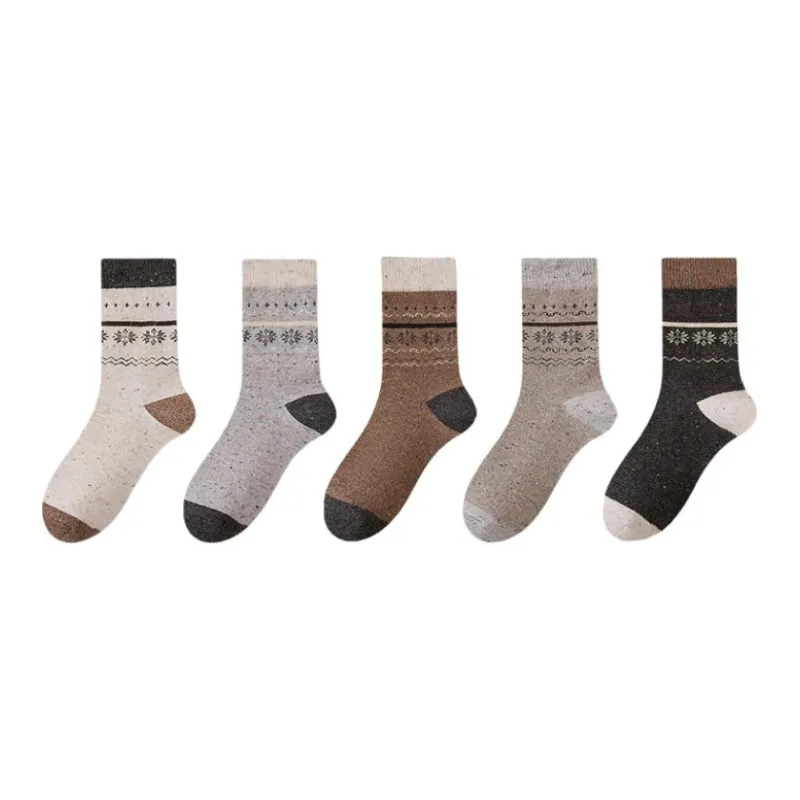 [Fair Остров Коллекция Снежинка Узор 5 пар] Светло-Кофейный + Светло-Серый + Черный + Хаки + Бежевый