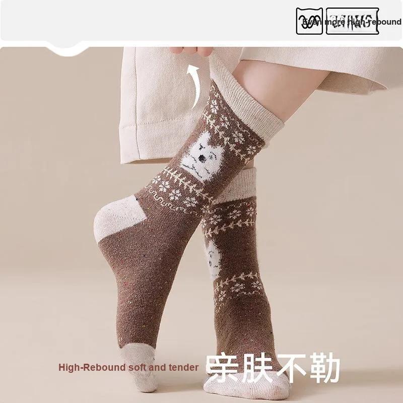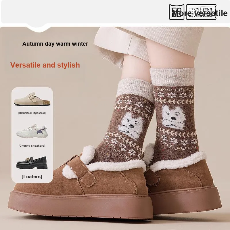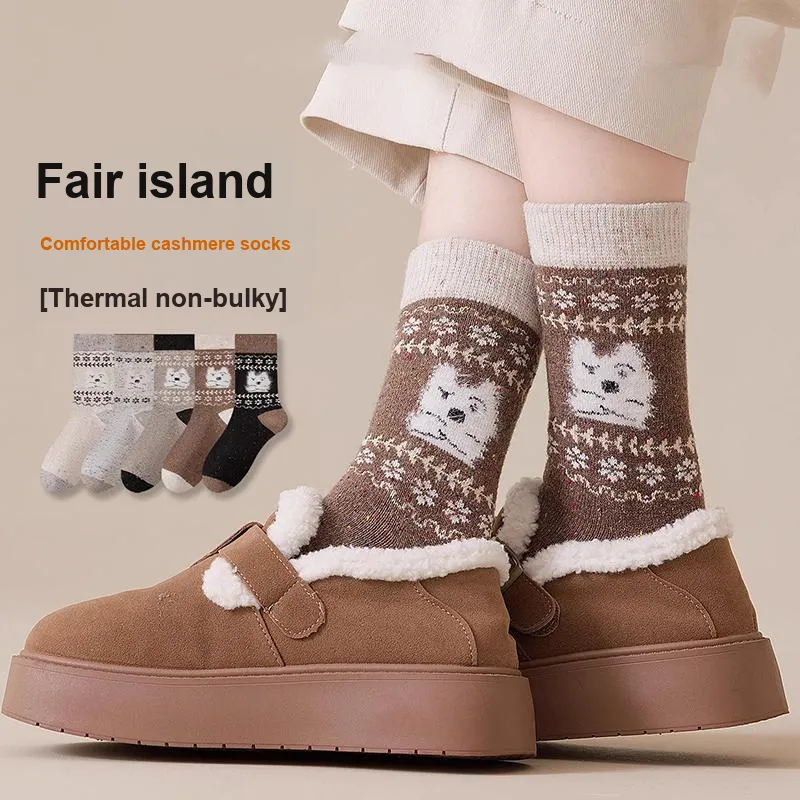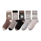 2323 [Fair Остров Color Series Щенок Узор 5 пар] Бежевый + Светло-серый + Хаки + Светло-кофейный + Черный Унисекс MID Носки до икры