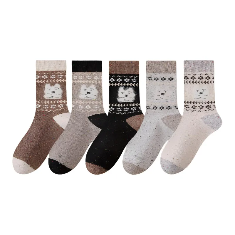 [Fair Остров Цвет Серия Щенок Узор 5 пар] Бежевый + Светло-серый + Хаки + Светло-кофейный + Черный
