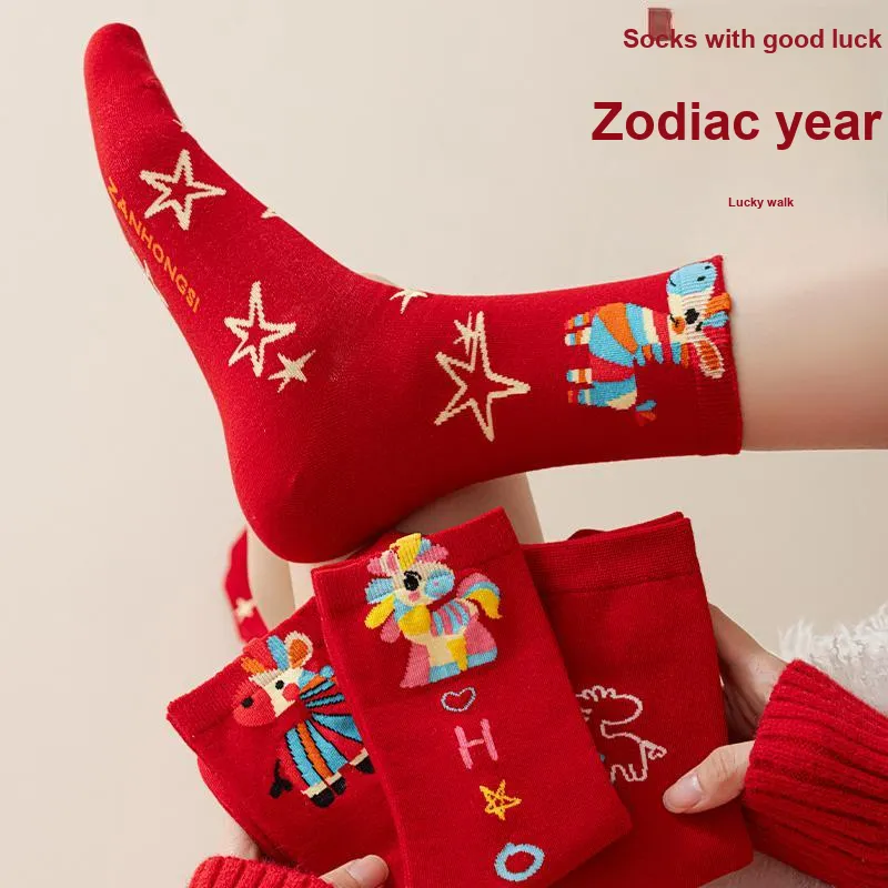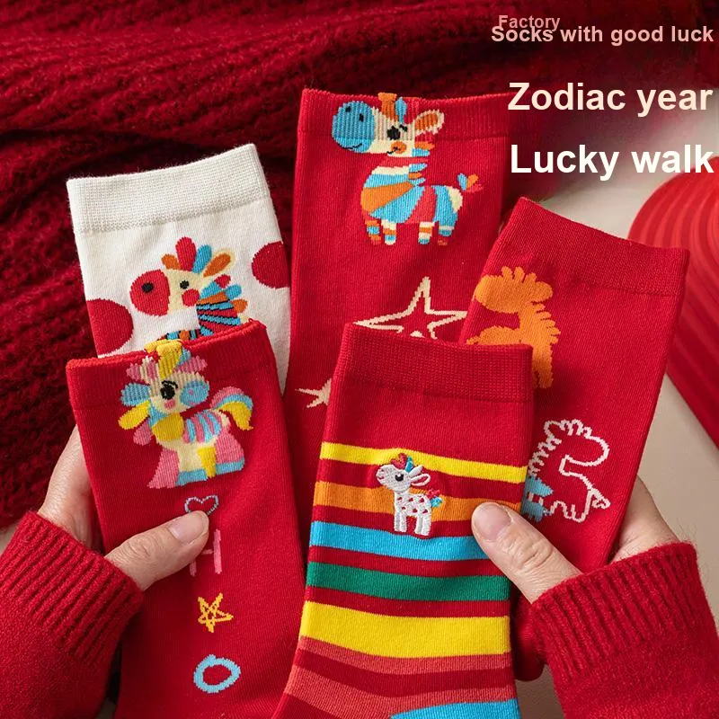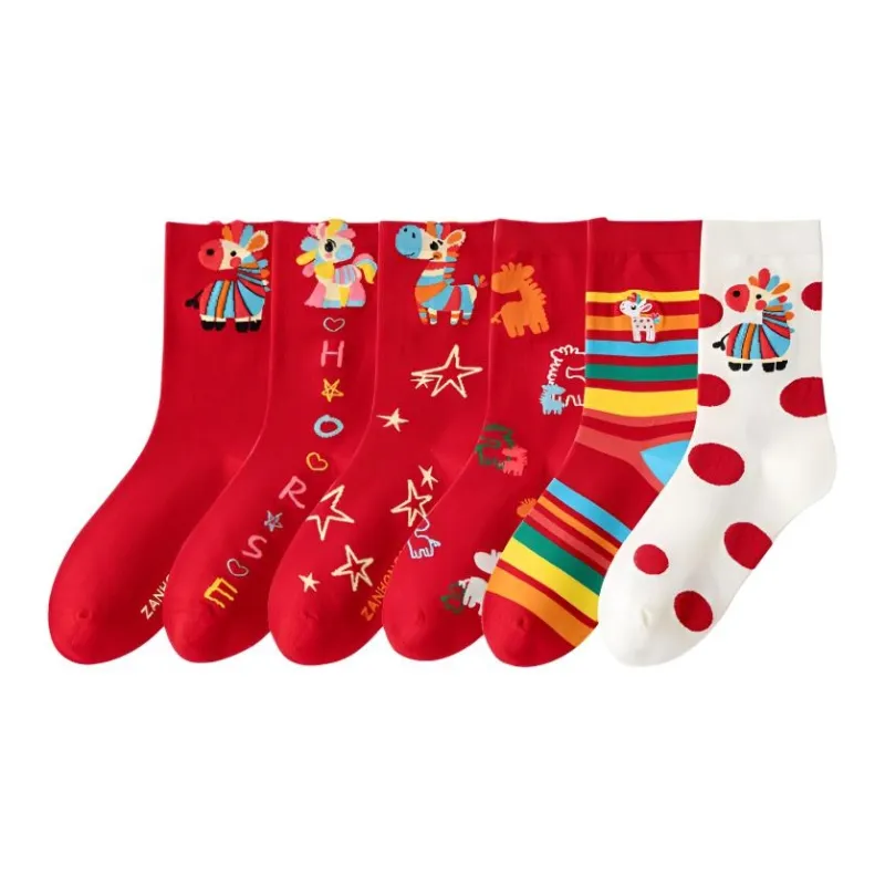 2323 [Лошадь Год Зодиакальный год 6 пар] Однотонный Лошадь+Лошадь+Звезды Лошадь+Полностью Лошадь+Вышивка Многоцветные полосы+Гороховый узор Лошадь Женские MID Носки до икры