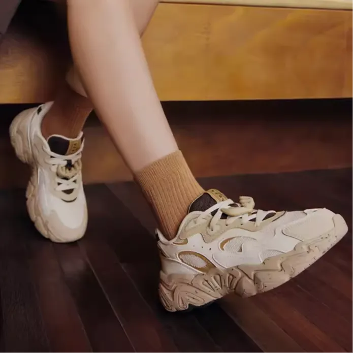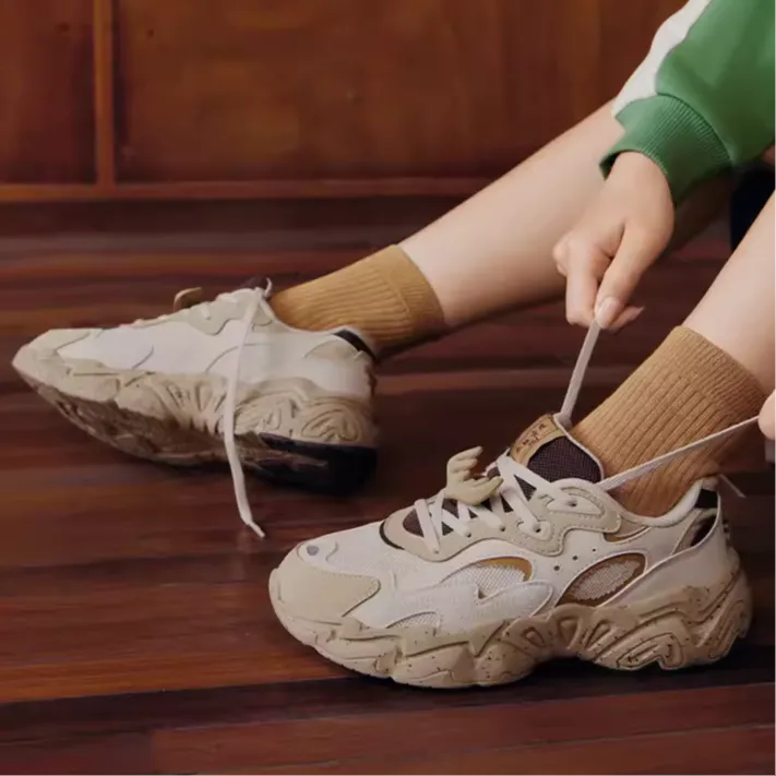 361° Противоскользящий устойчивый к истиранию низкий топ кроссовки с толстой подошвой женские овсяное молоко абрикосово-чайный коричневый
